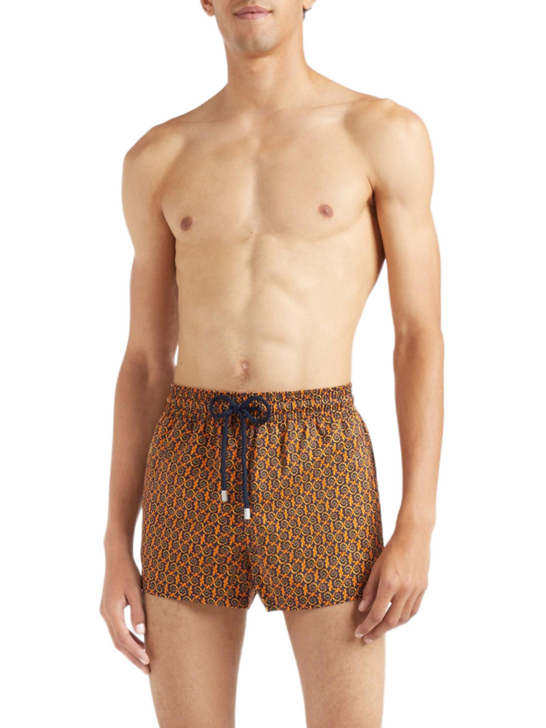 تم تزيين شورت السباحة Manta هذا من Vilebrequin بطبعة هندسية على شكل غلاف. تضمن أربطة Vilebrequin ملاءمة مريحة بينما تكمل رقعة الشعار الأيقونية على حزام الخصر الخلفي التصميم.