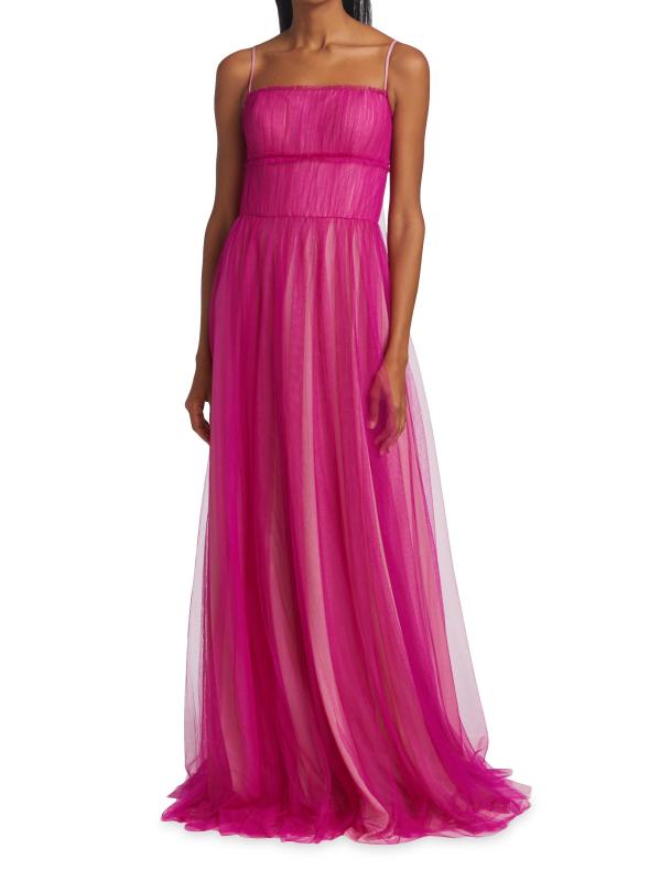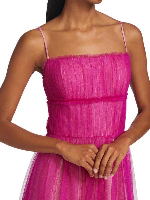 حصري. يكتمل هذا الفستان المصنوع من التول شبه الشفاف متعدد الطبقات بصدّار مطوي وغطاء خلفي خلفي.رقبة مربعة أحزمة سباغيتي قابلة للتعديل غرفة عميقة من الخلف سحّاب خلفي مخفي 100% بوليستر تنظيف جاف مستوردة