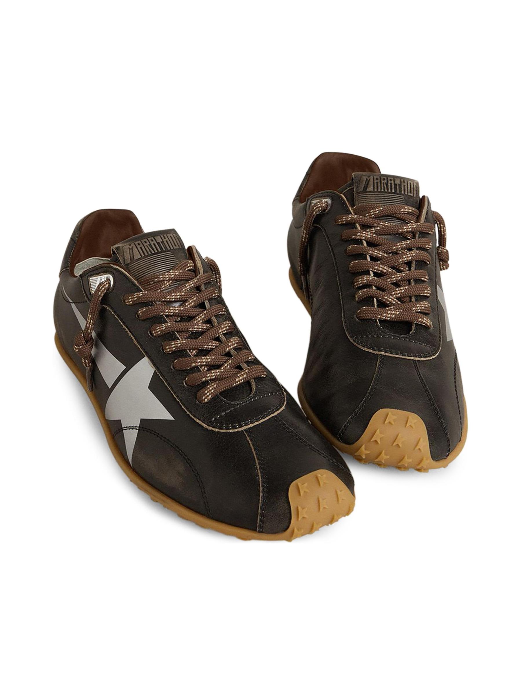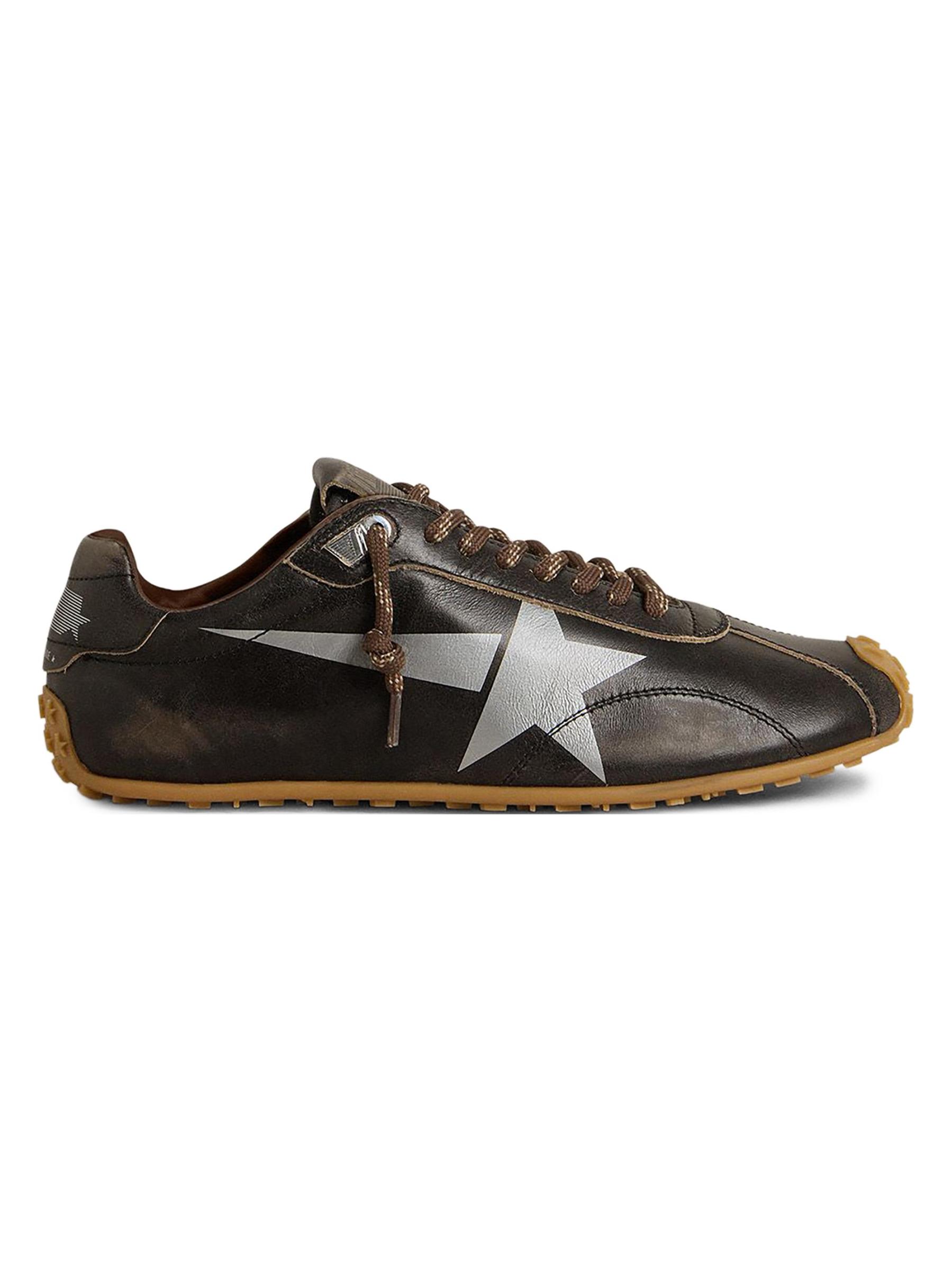 يتميز حذاء Marathon M70 الرياضي من Golden Goose بتصميم مستوحى من سباقات المضمار والميدان، ومصنوع يدويًا من الجلد مع اللمسة النهائية المميزة للعلامة التجارية. يعطي النعل الخارجي المطاطي اللامع انطباعًا فريدًا.