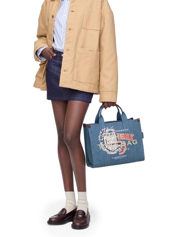 من مارك جاكوبس x The A.P.C. Collaborationl هذه الحقيبة الكبيرة من مارك جاكوبس مصنوعة من الدنيم وتتميز بخيارات حمل متعددة الاستخدامات.