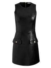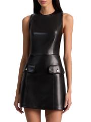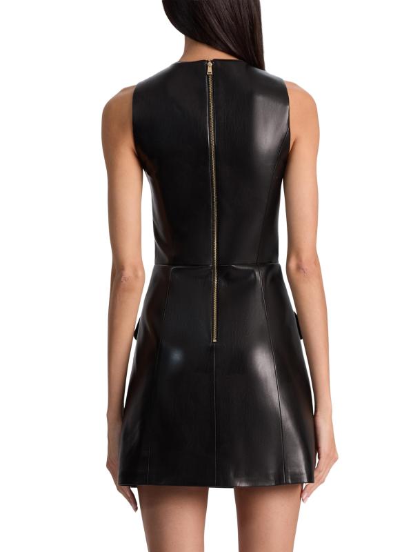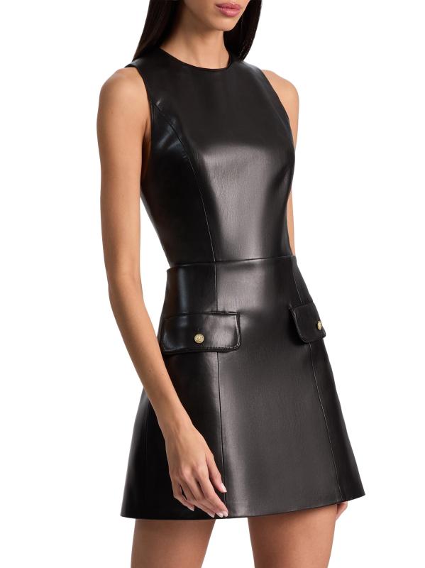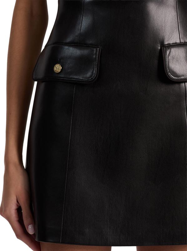 تم تصميم فستان Marcella الصغير من Alice + Olivia من الجلد الصناعي مع رقبة مستديرة وجيوب مطوية بأزرار ذهبية اللون.