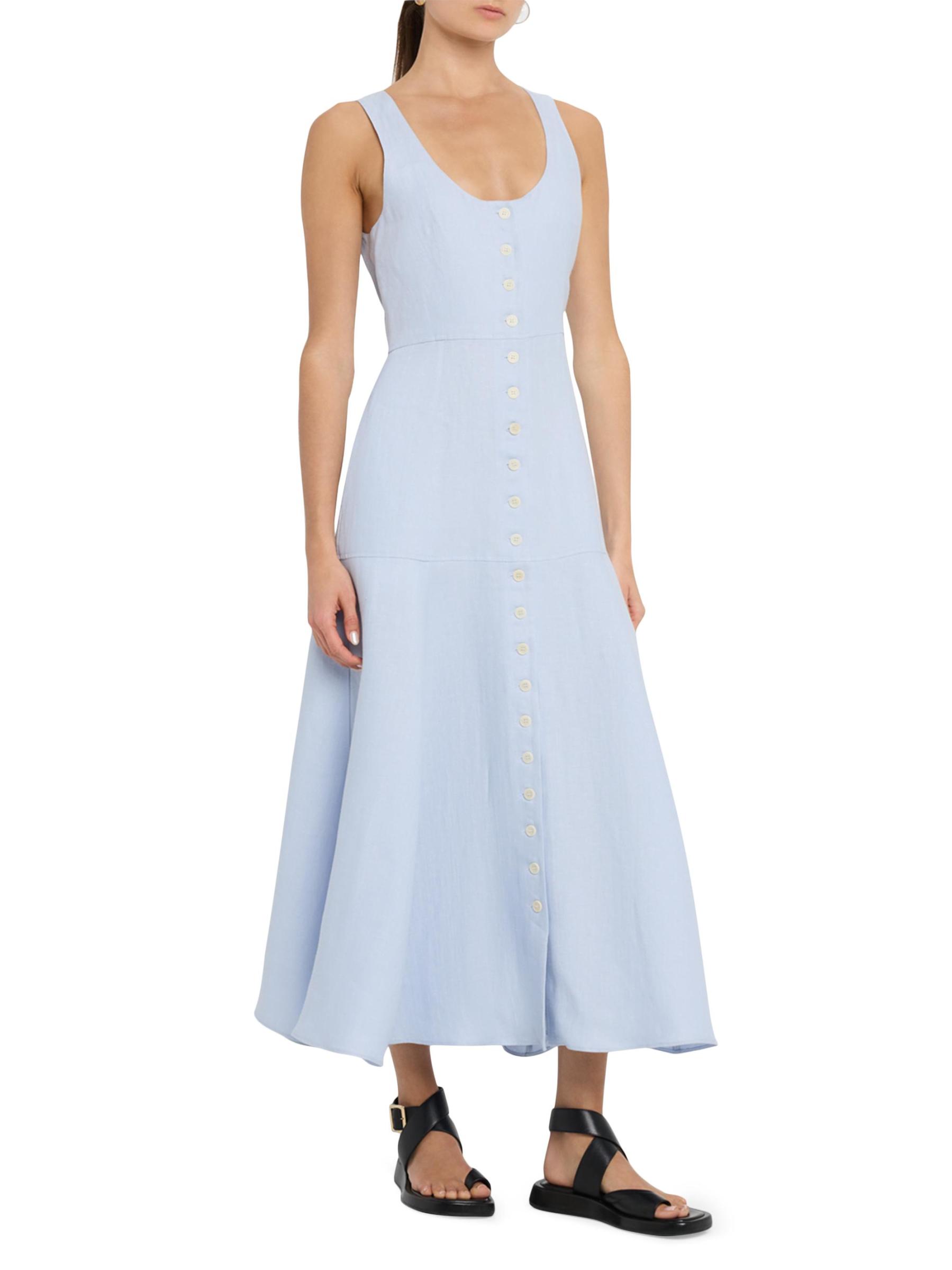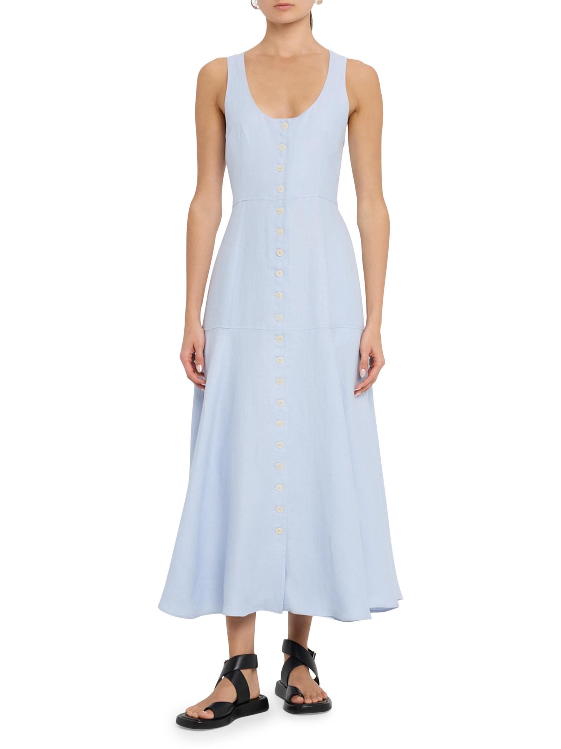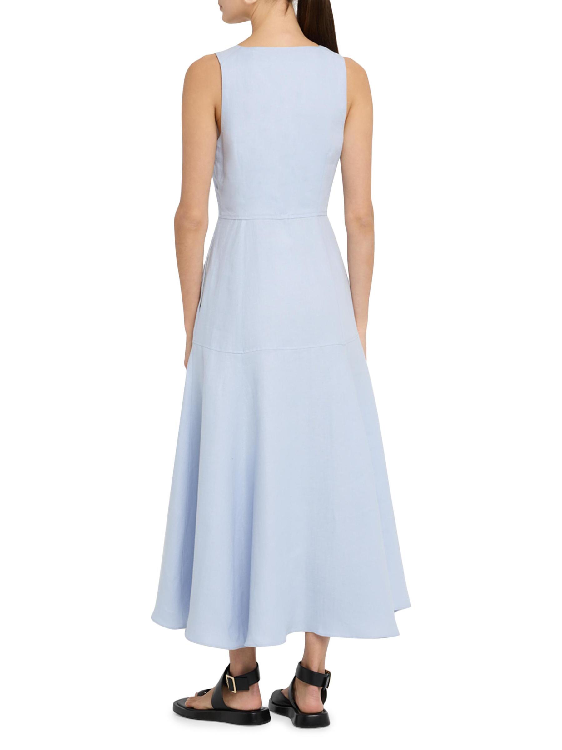 فستان مارسي متوسط الطول من الكتان بدون أكمام
