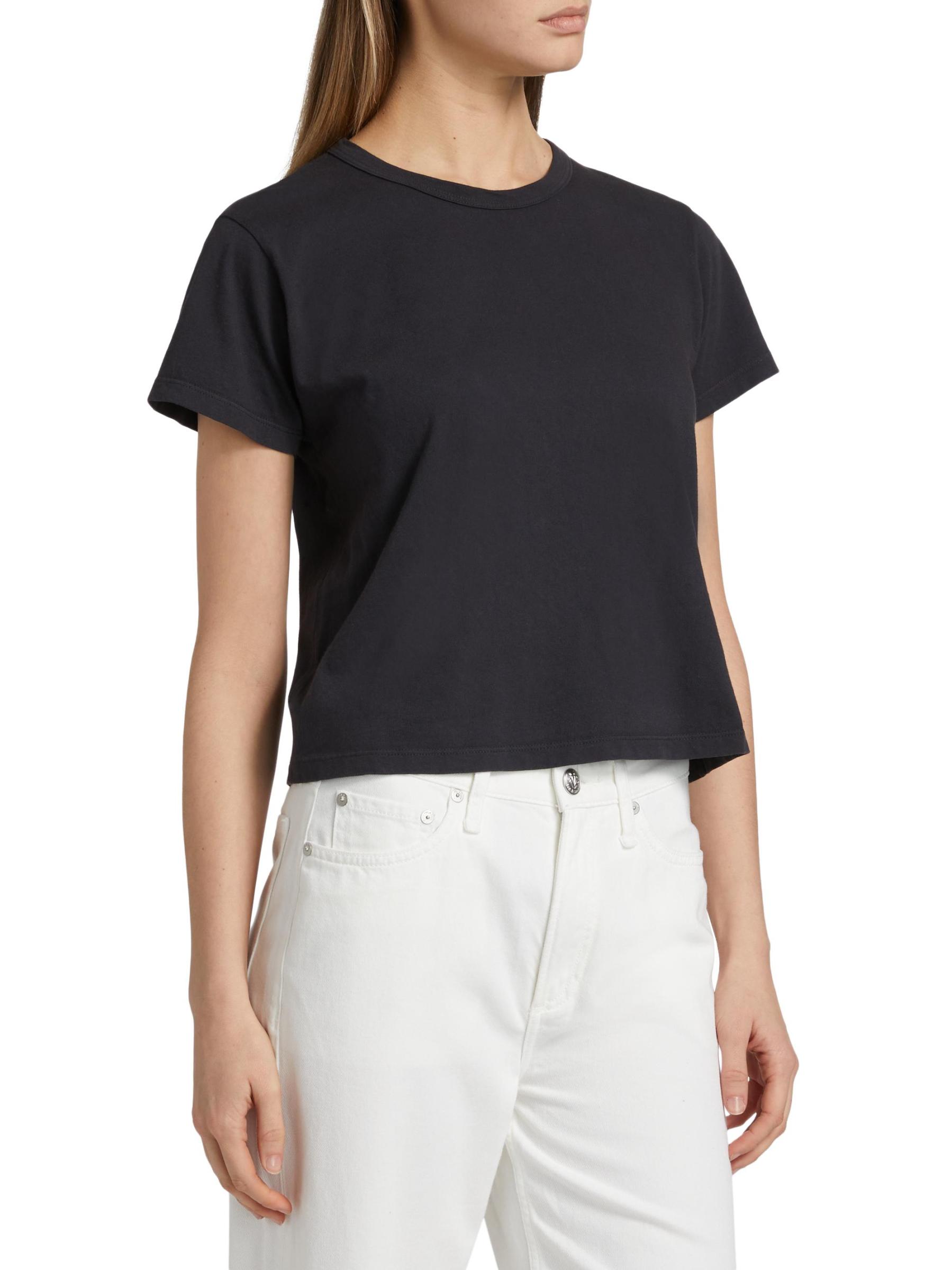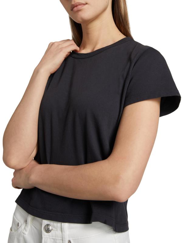 تيشيرت Leset's Margo مصنوع من القطن الناعم مع رقبة مستديرة وأكمام قصيرة. تم الانتهاء من هذا النمط بحاشية عالية ومنخفضة.