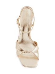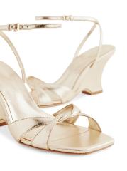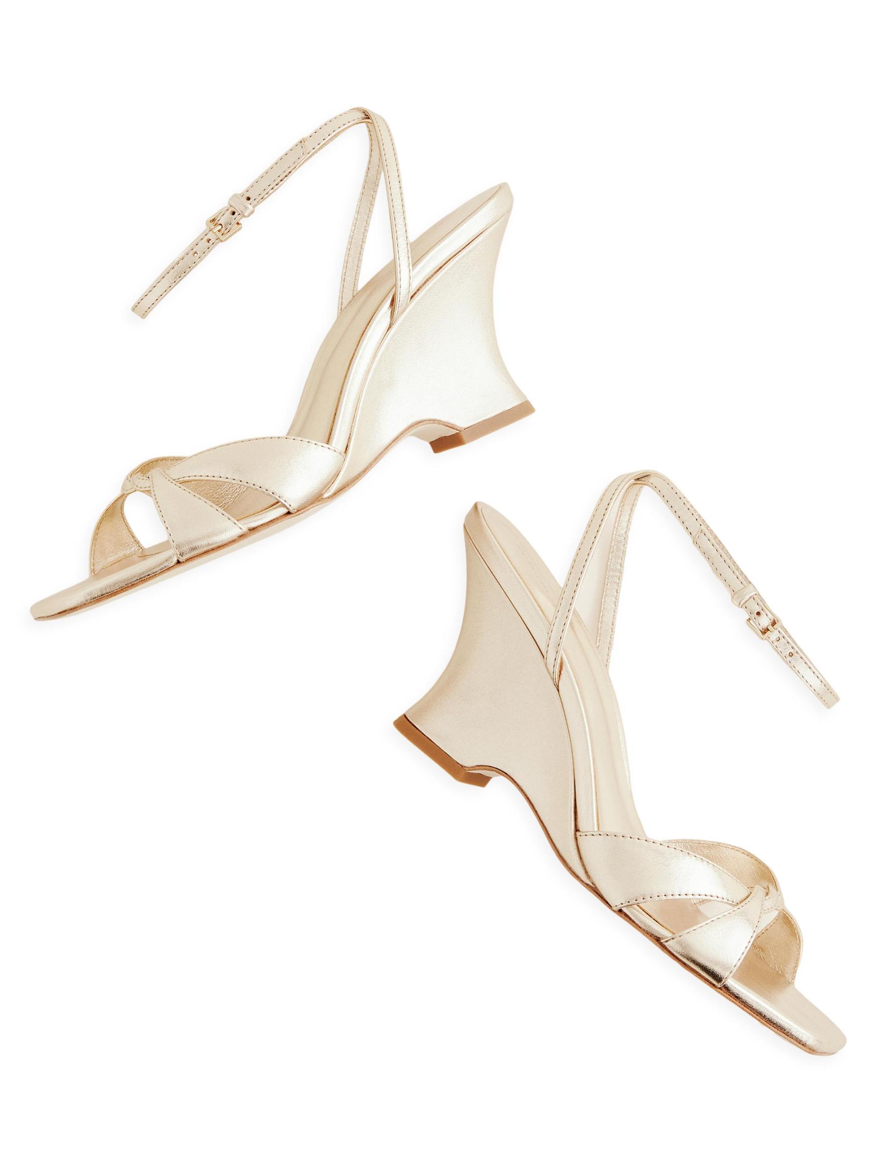 صُنع صندل Margot هذا من Reformation من الجلد المعدني ويتميز بحزام ملتوي على الحذاء وكعب إسفين منحني يمنحك لمسة مرحة مع كل خطوة.