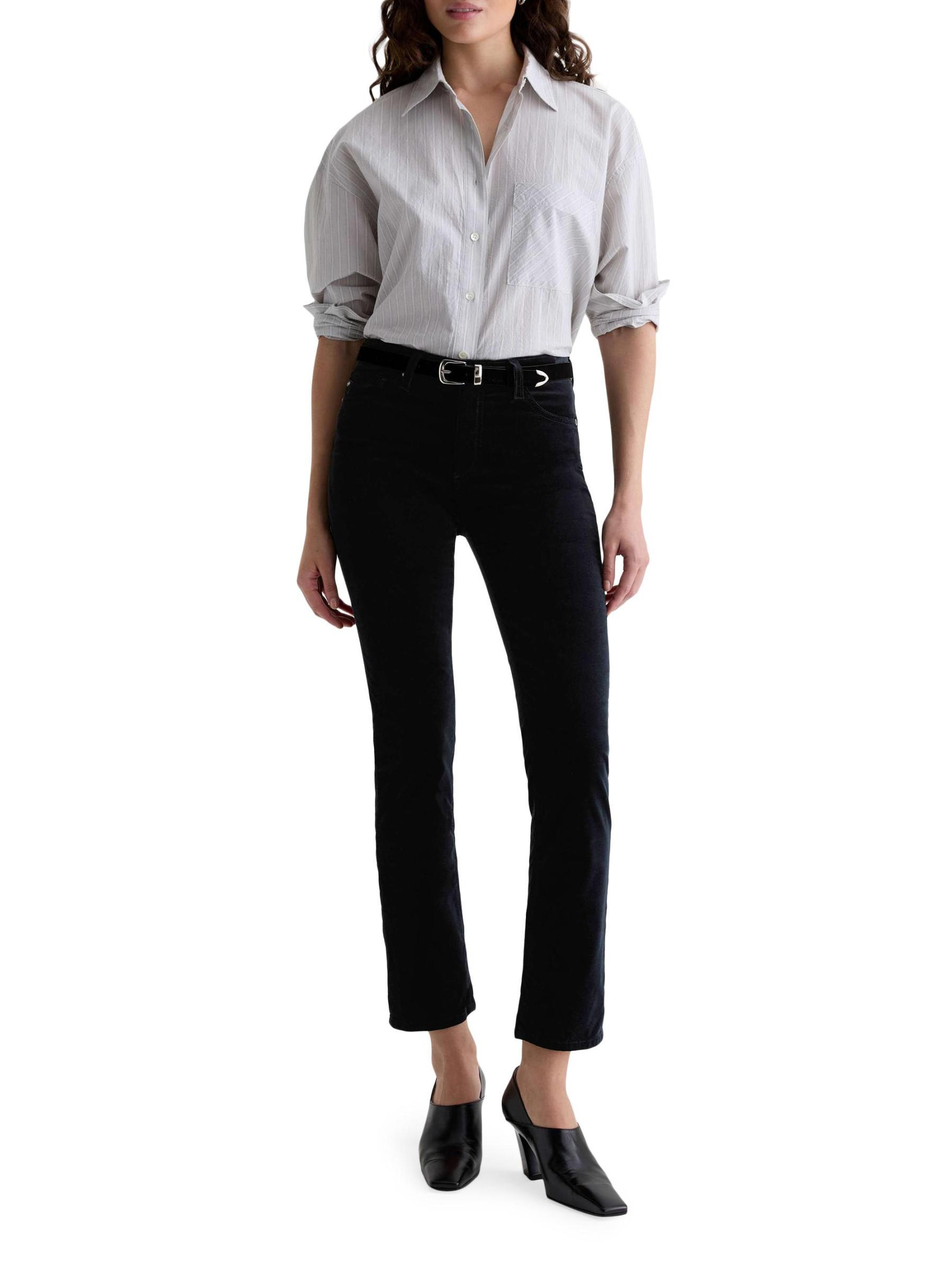 صُمم بنطال جينز Mari متوسط الارتفاع من AG Jeans من المخمل المرن ليمنحك مظهرًا نحيفًا ومستقيمًا. تصميم كلاسيكي بخمسة جيوب يُبرز تفاصيل هذا الزوج المقصوص على الكاحل.