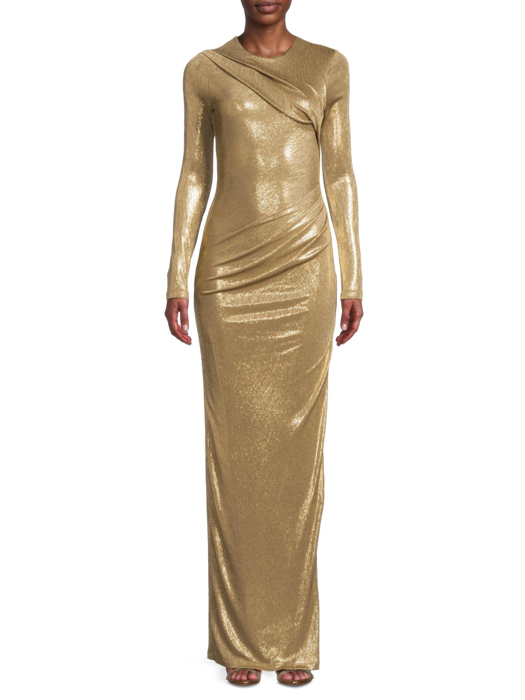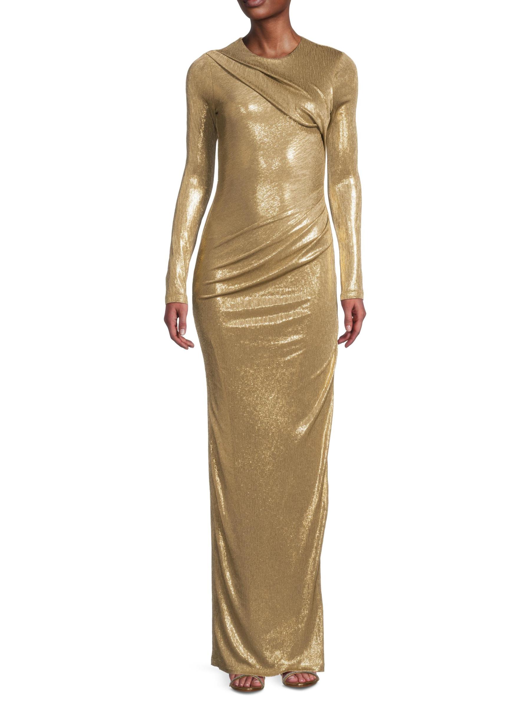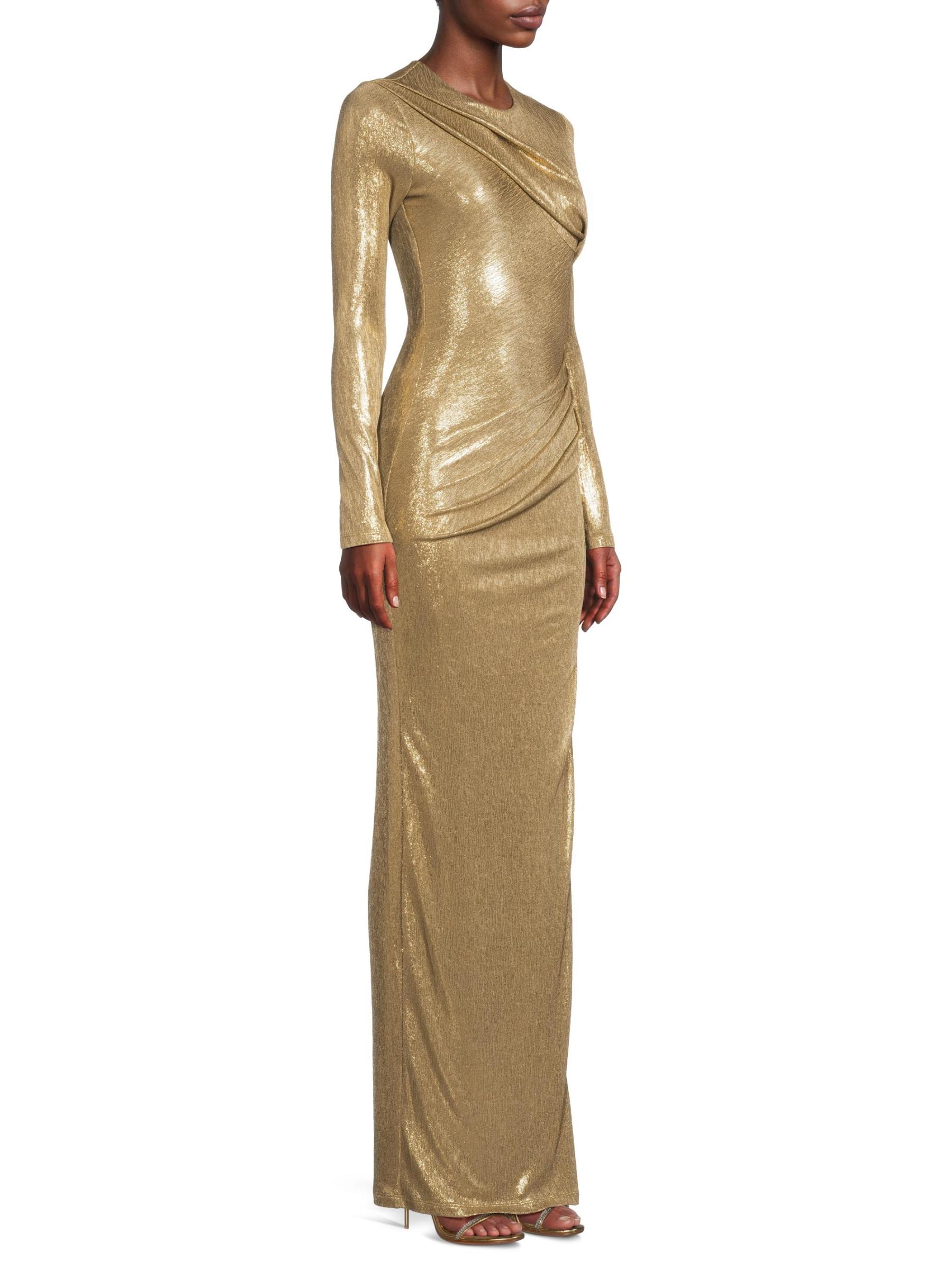 فستان ماريكا المعدني بأكمام طويلة منسدل