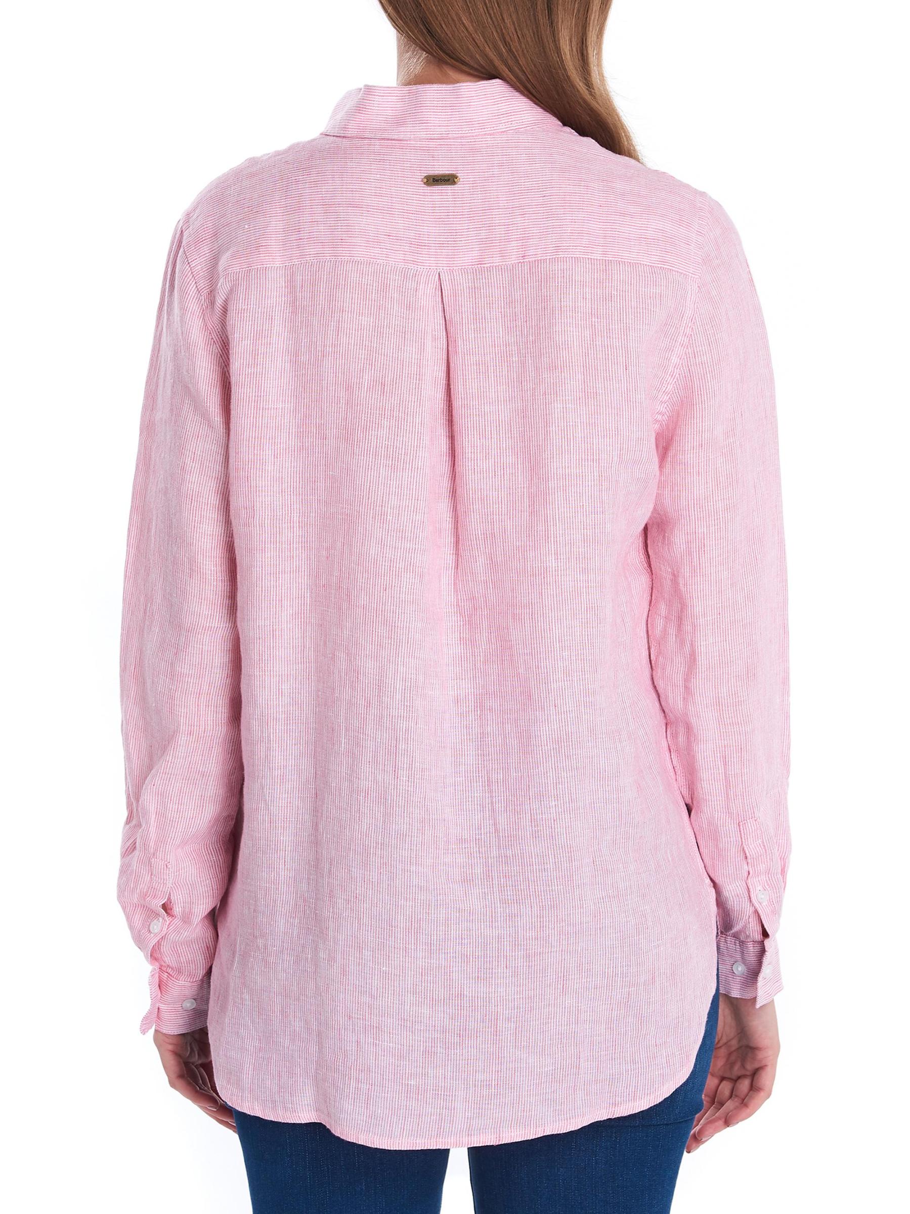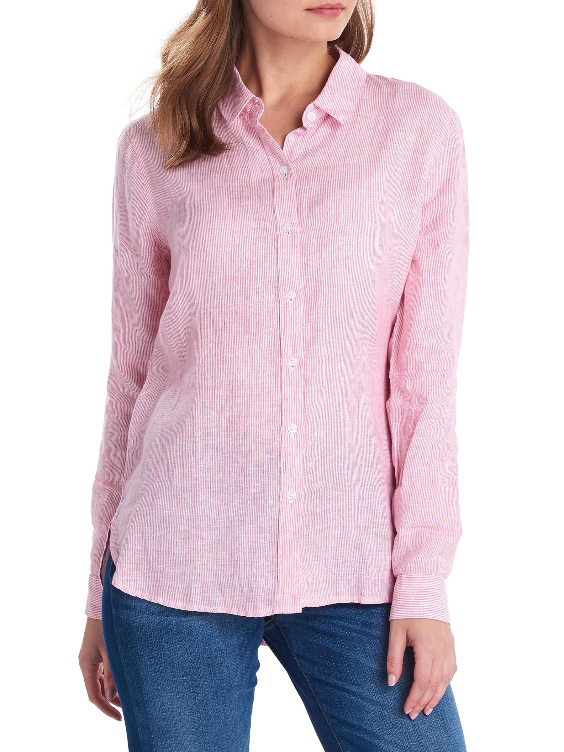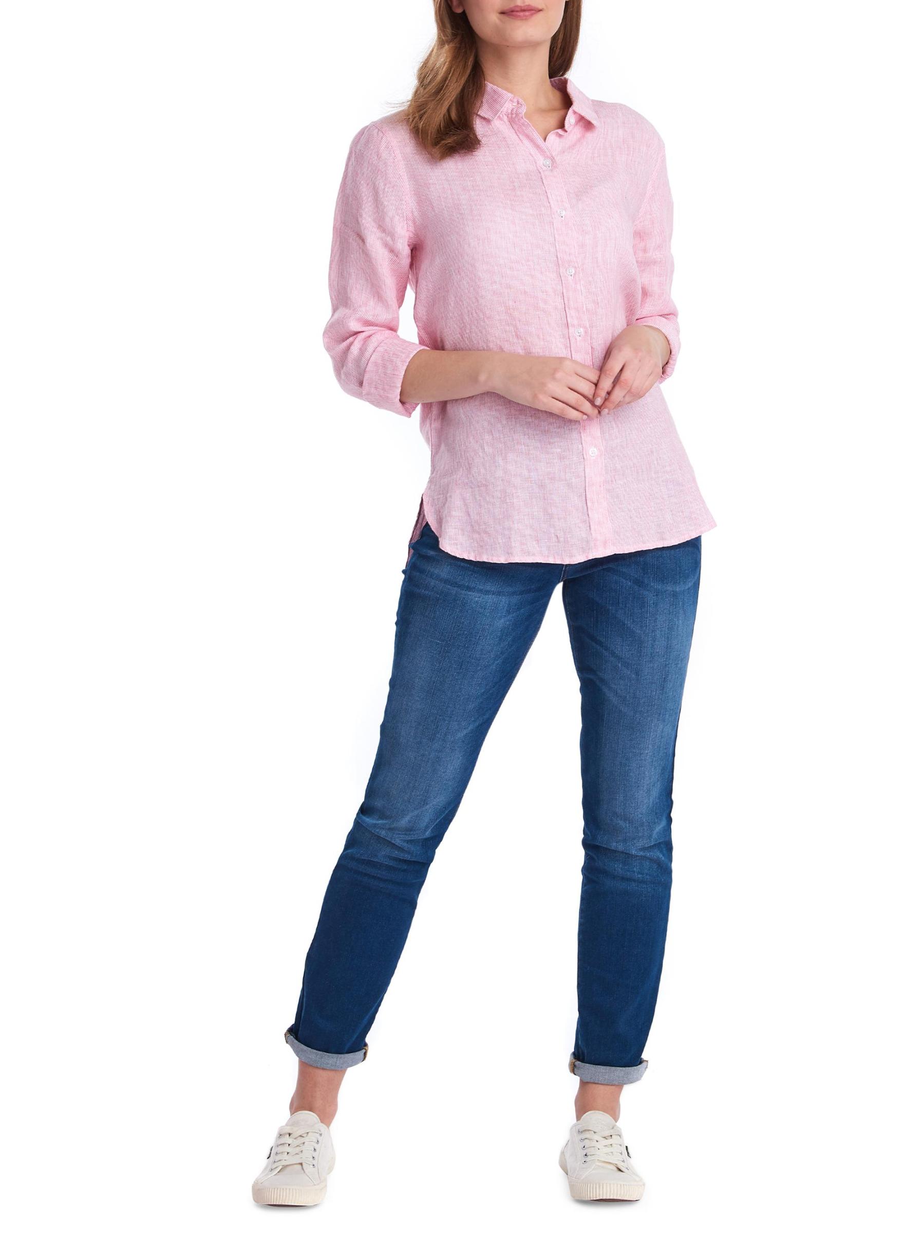 يتميز قميص Marine من Barbour المصنوع من الكتان الناعم وخفيف الوزن بياقة كلاسيكية واسعة وحاشية منحنية. تم الانتهاء من التصميم بأساور ذات أزرار مزدوجة تحمل علامة تجارية.