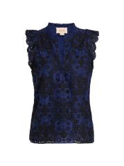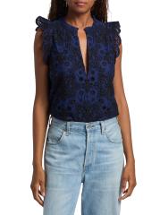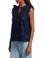 بلوزة Maris من Figue مصنوعة من القطن وتتميز بتفاصيل مطرزة وأساور صدفية مزينة بفتحات.رقبة منقسمة أكمام كاب تسحب قطن بنسبة 100% تنظيف جاف مستوردة