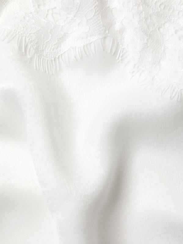 من مجموعة Marry Me. يتميّز قميص «إن بلوم» المصنوع من الساتان اللامع بتنورة ساتان غير متماثلة، يكمّلها صدّار جميل من الدانتيل وزخارف رقيقة من الدانتيل.رقبة على شكل حرف V أحزمة سباغيتي تسحب 100% بوليستر صدرية الدانتيل: 100% نايلون يُغسل في الغسالة مستوردة