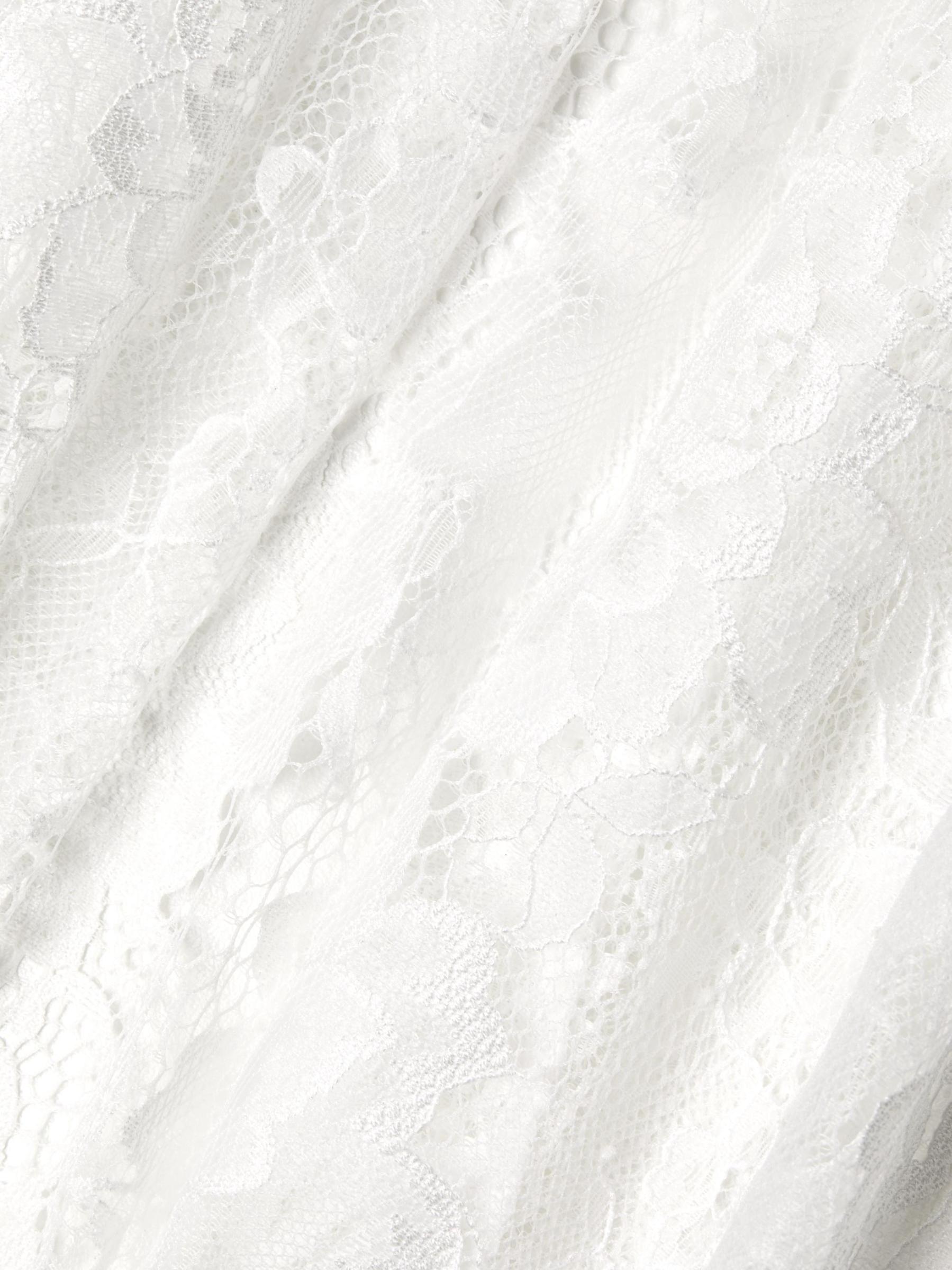 مجموعة ماري مي. في غلاف Bloom الجميل المصنوع بالكامل من الدانتيل والذي يتميز بأكمام على شكل جرس وحزام من الساتان.