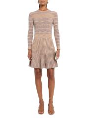 هذا الفستان القصير من Shoshanna مصنوع من نسيج مضلع متعدد الألوان ومصبوغ بفضاعات ومصمم بحزام خصر عريض وتنورة ذات ثنيات ناعمة.رقبة مستديرة أكمام طويلة تسحب بوليستر تنظيف جاف مستوردة