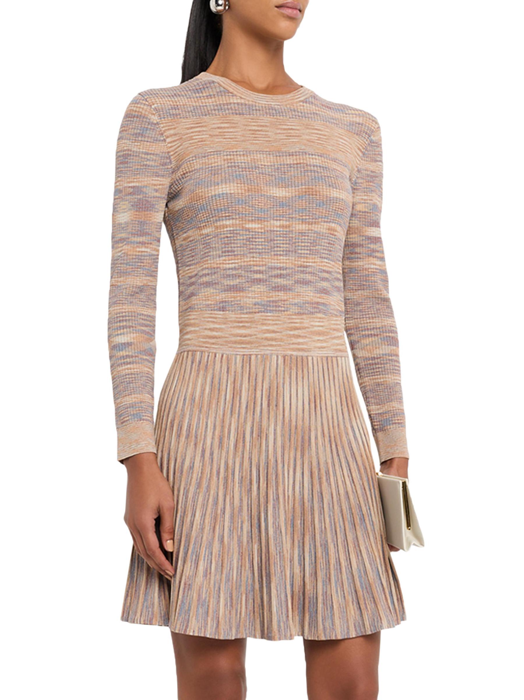 هذا الفستان القصير من Shoshanna مصنوع من نسيج مضلع متعدد الألوان ومصبوغ بفضاعات ومصمم بحزام خصر عريض وتنورة ذات ثنيات ناعمة.