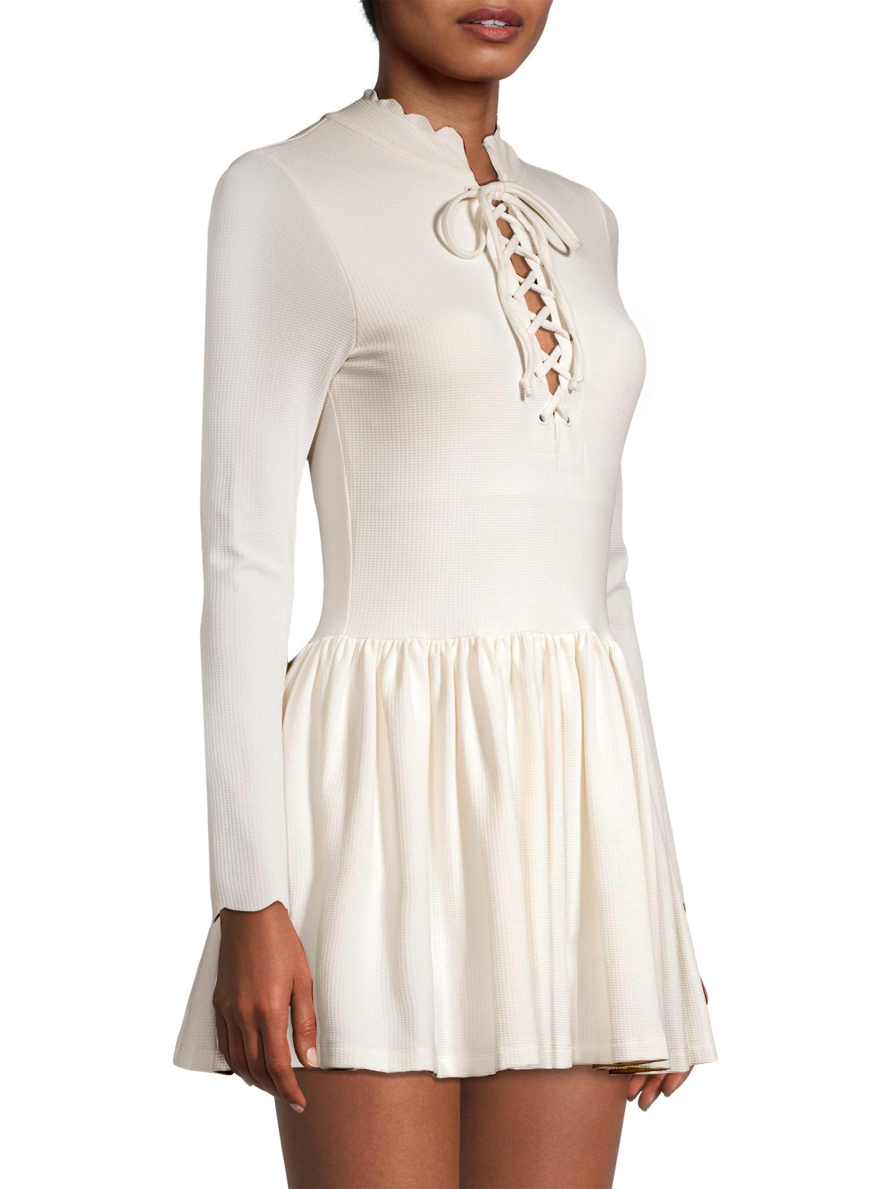 صُمم فستان مارتينا من Marysia بتصميم جذاب ومشرق مع تقويرة شبكية جذابة.رقبة موكنك صدفية فتحة رقبة شبكية أكمام طويلة بأساور صدفية زر خلفي بفتحة المفتاح خصر منخفض مُحاك تنورة مجمعة بولياميد/إيلاستين غسيل يدوي مستورد من قماش إيطالي