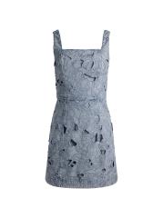 فستان جينز قطني قصير بقصّة بالليزر من Maryann