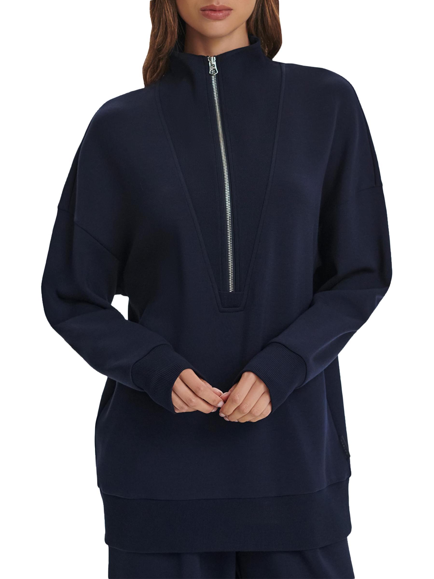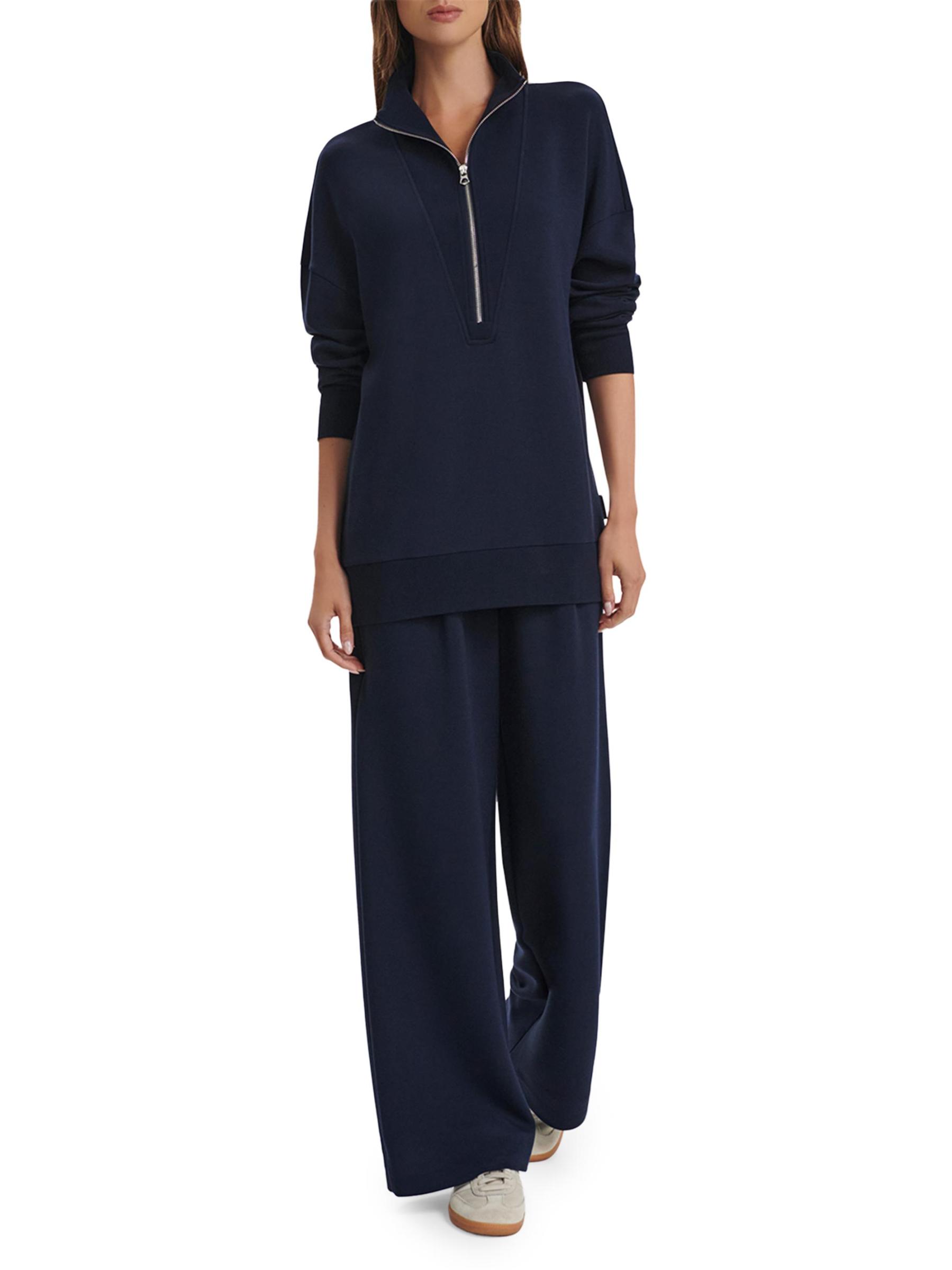 تتميّز سترة Masie من Varley، المُصمّمة بتصميم طويل كبير الحجم، بإغلاق بسحّاب نصفي مع تفاصيل مضلّعة على شكل حرف V.ياقة ستاند أكمام طويلة إغلاق بنصف سحّاب 72% فيسكوز/ 23% بوليستر/ 5% إيلاستين يُغسل في الغسالة مستوردة