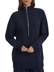 تتميّز سترة Masie من Varley، المُصمّمة بتصميم طويل كبير الحجم، بإغلاق بسحّاب نصفي مع تفاصيل مضلّعة على شكل حرف V.