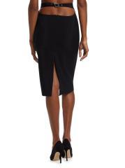 تم تصميم هذه التنورة المتوسطة من Matte Heavy Fluid من Mugler بفتحات وشق جذّاب في الخلف.