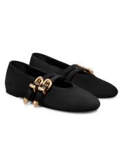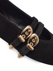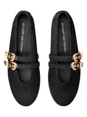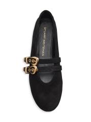 صُنعت ساعة Maven Mary Janes من Stuart Weitzman من الجلد المدبوغ المرن وتتميز بتصميم حزام مزدوج مع أجزاء معدنية ذهبية اللون.