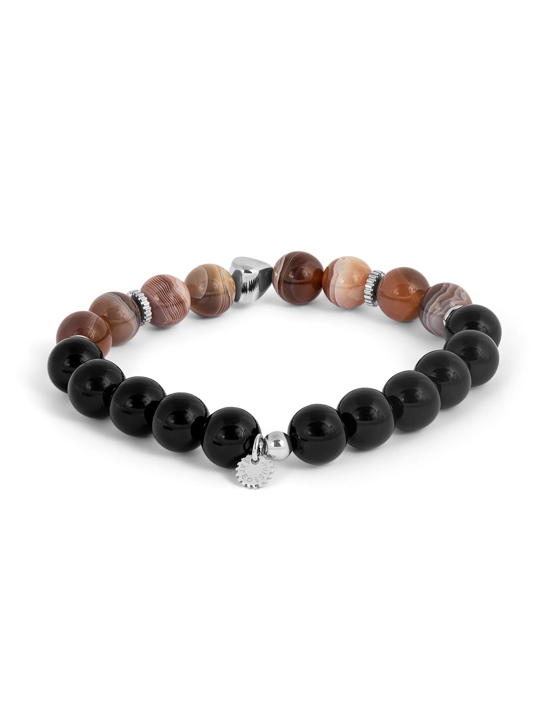 سوار ماكسي ناجيت بوتسوانا من العقيق الأسود والفضة الإسترلينية المزيّن بالخرز