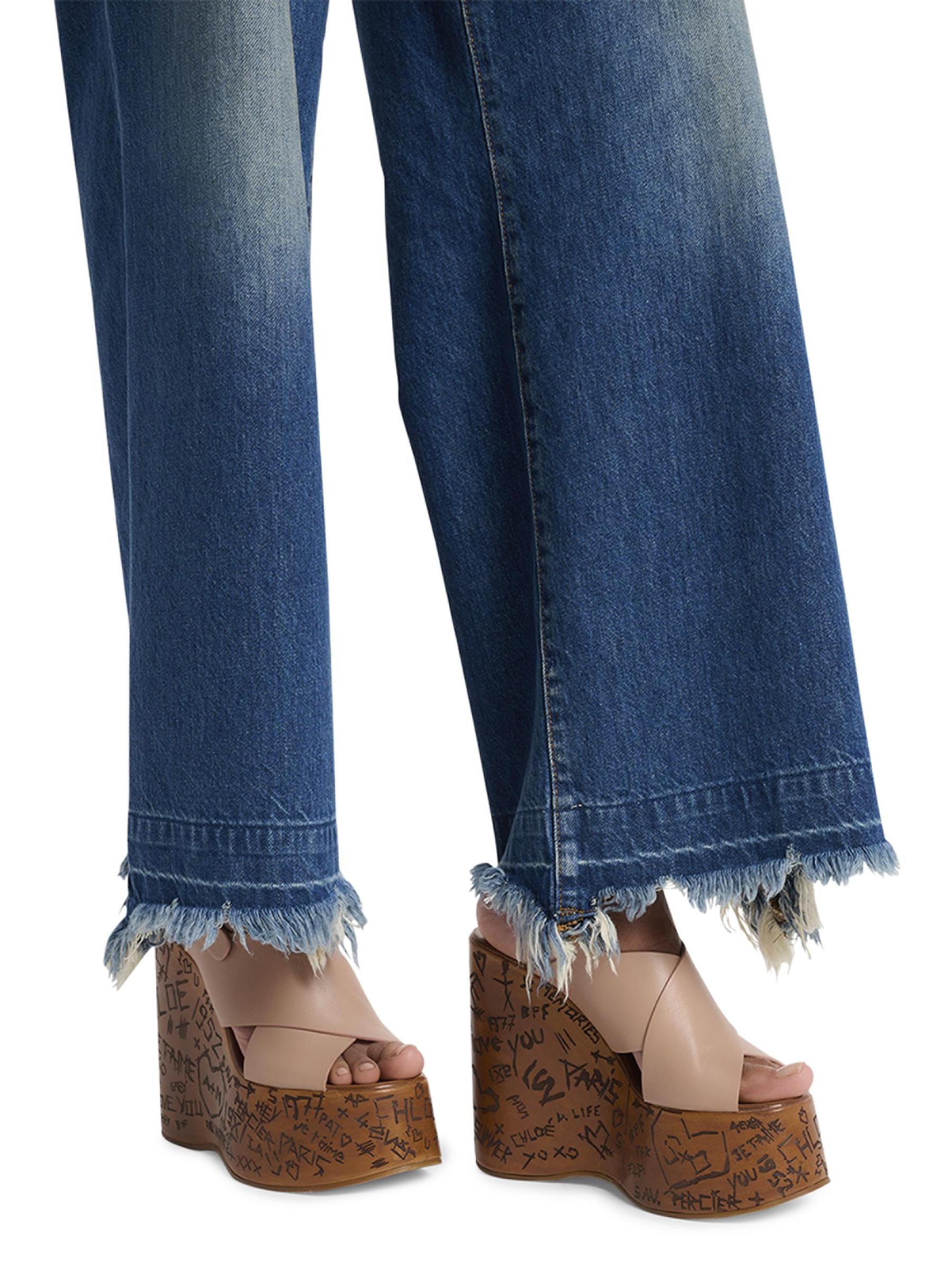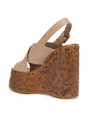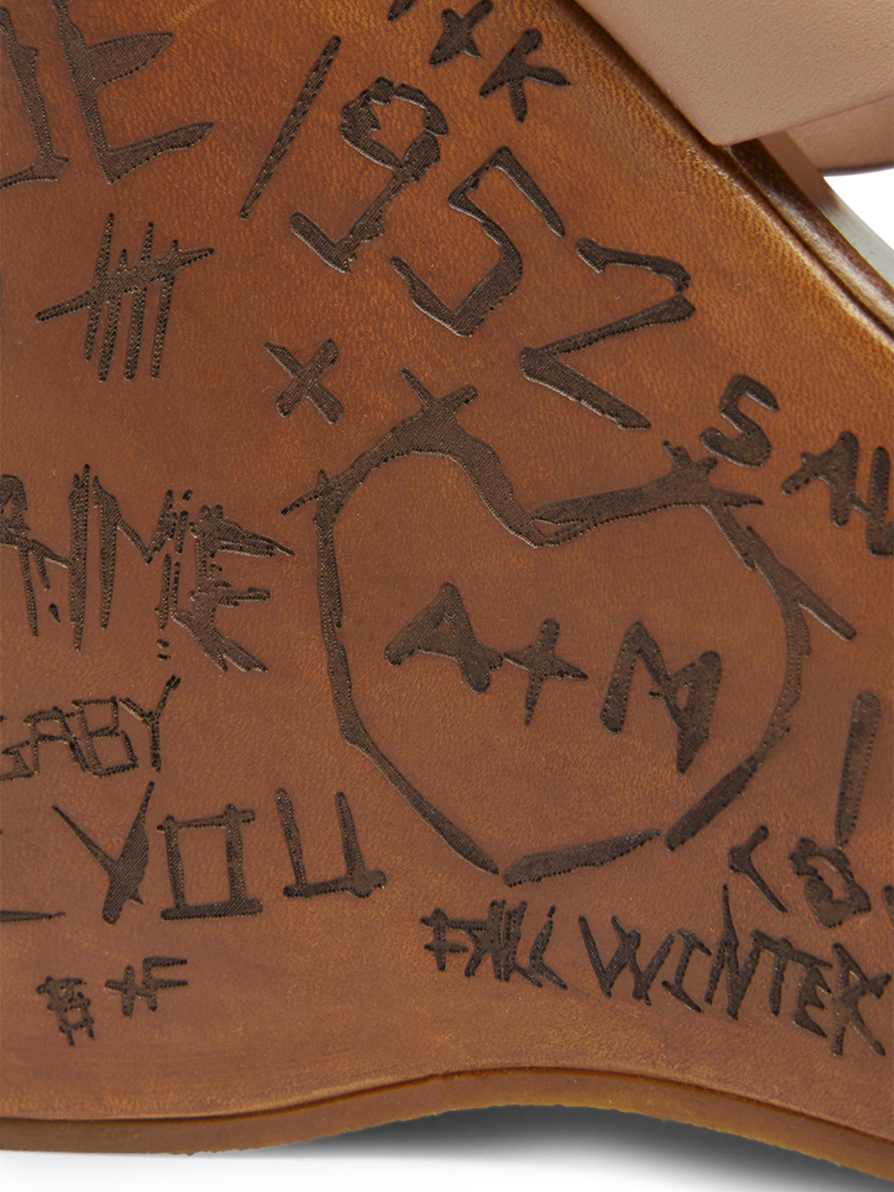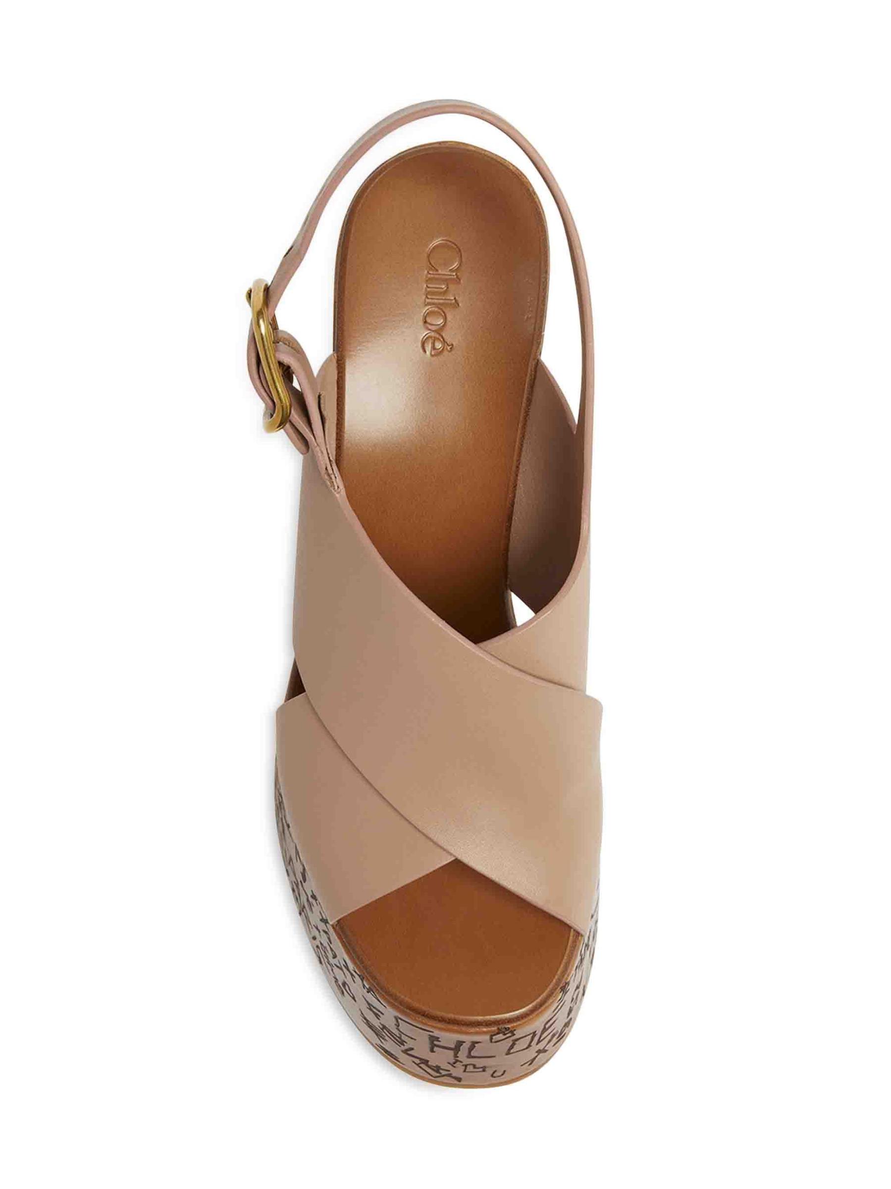 يتميز صندل Maxime سلينغ باك من Chloé بتصميم متقاطع مصنوع من الجلد فوق كعب إسفين يبلغ 130 مم، منقوش عليه شعارات مرحة.