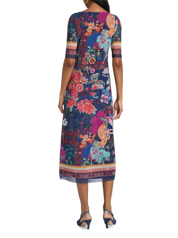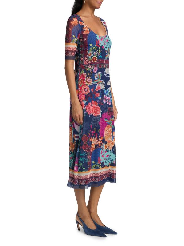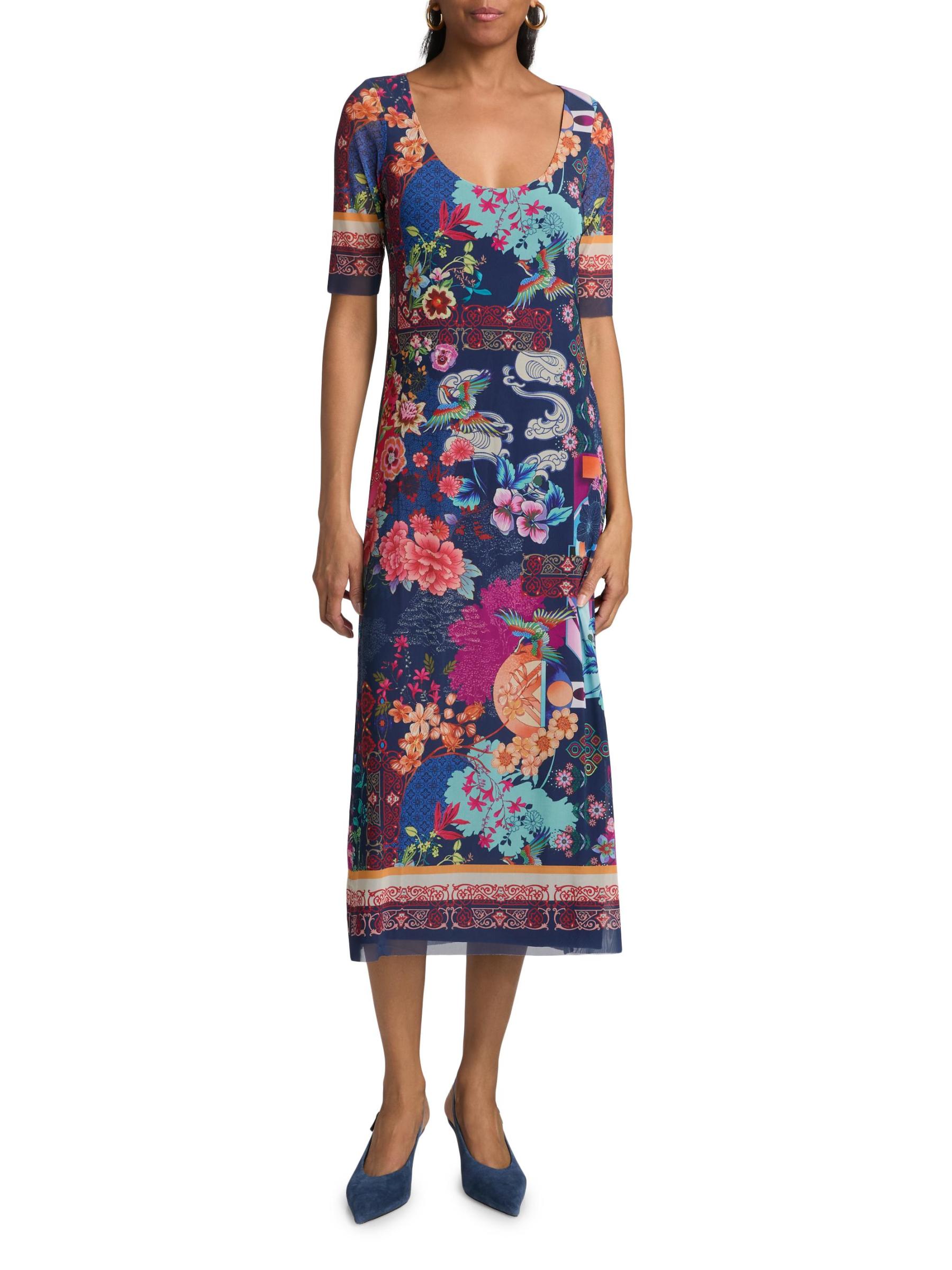 فستان متوسط الطول من القماش الشبكي بطبعة مايا