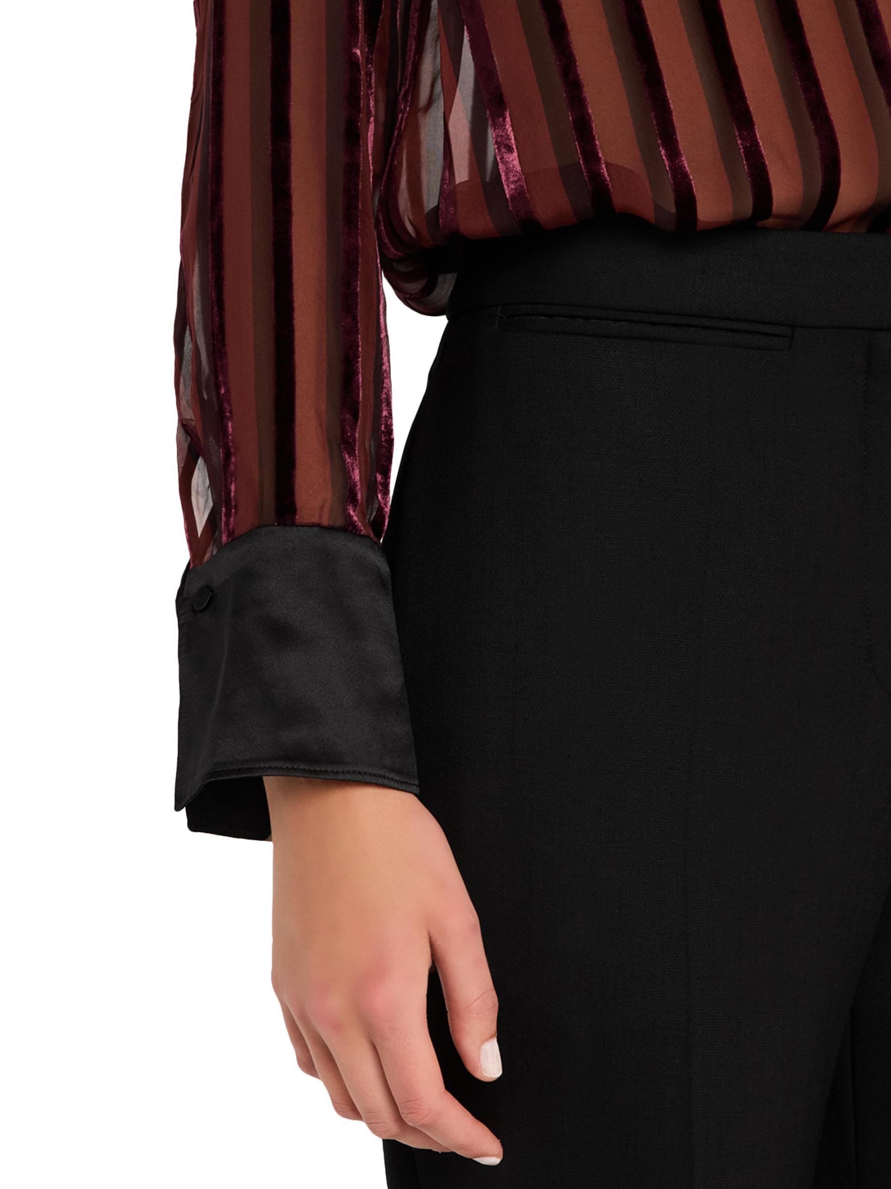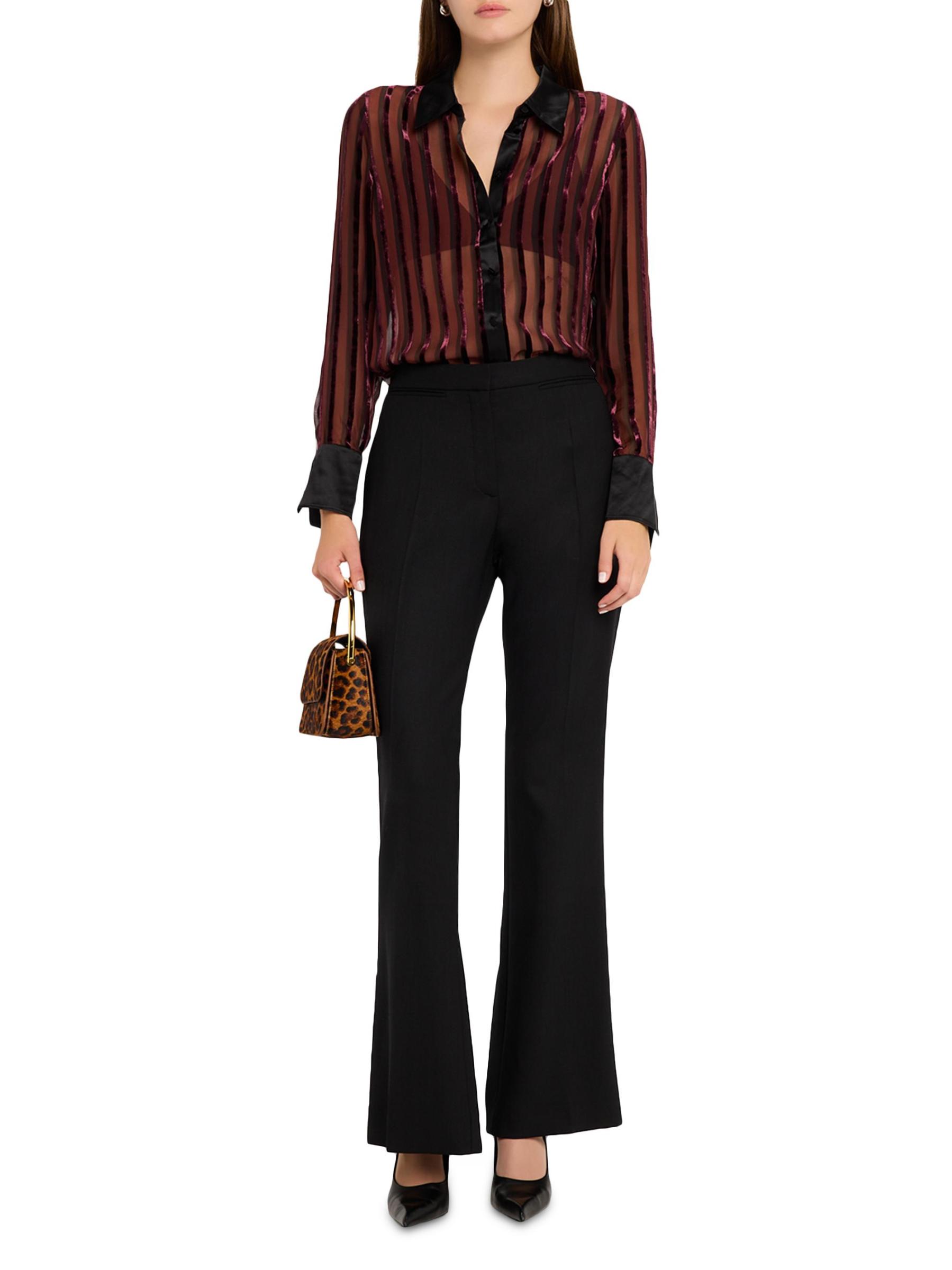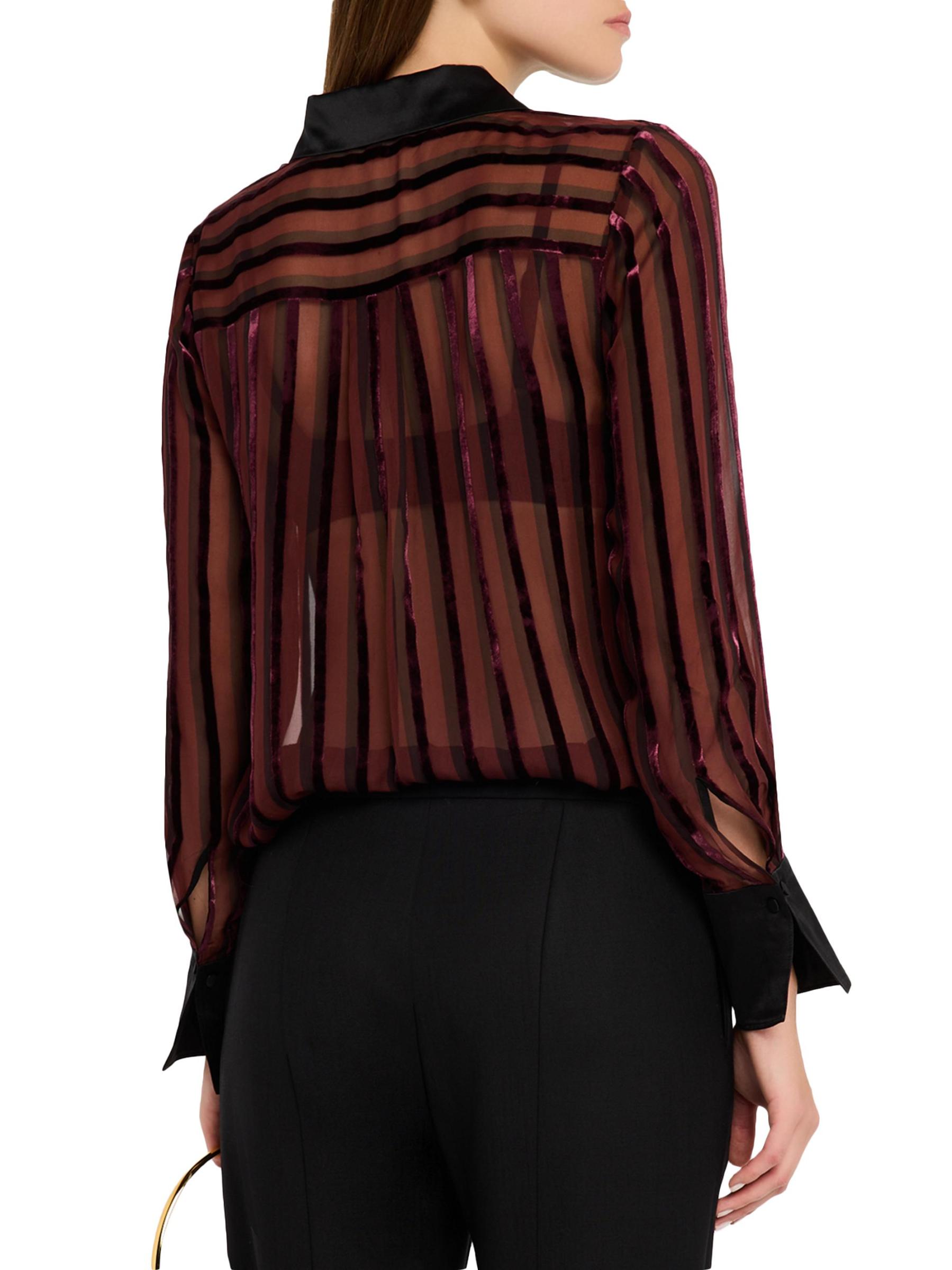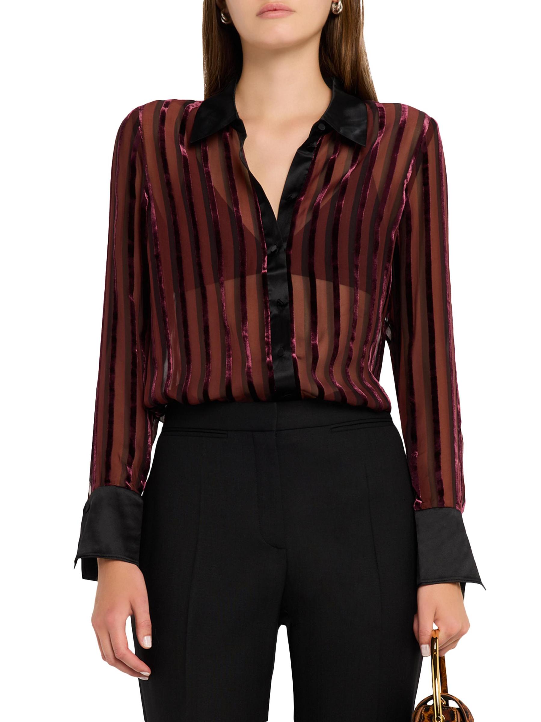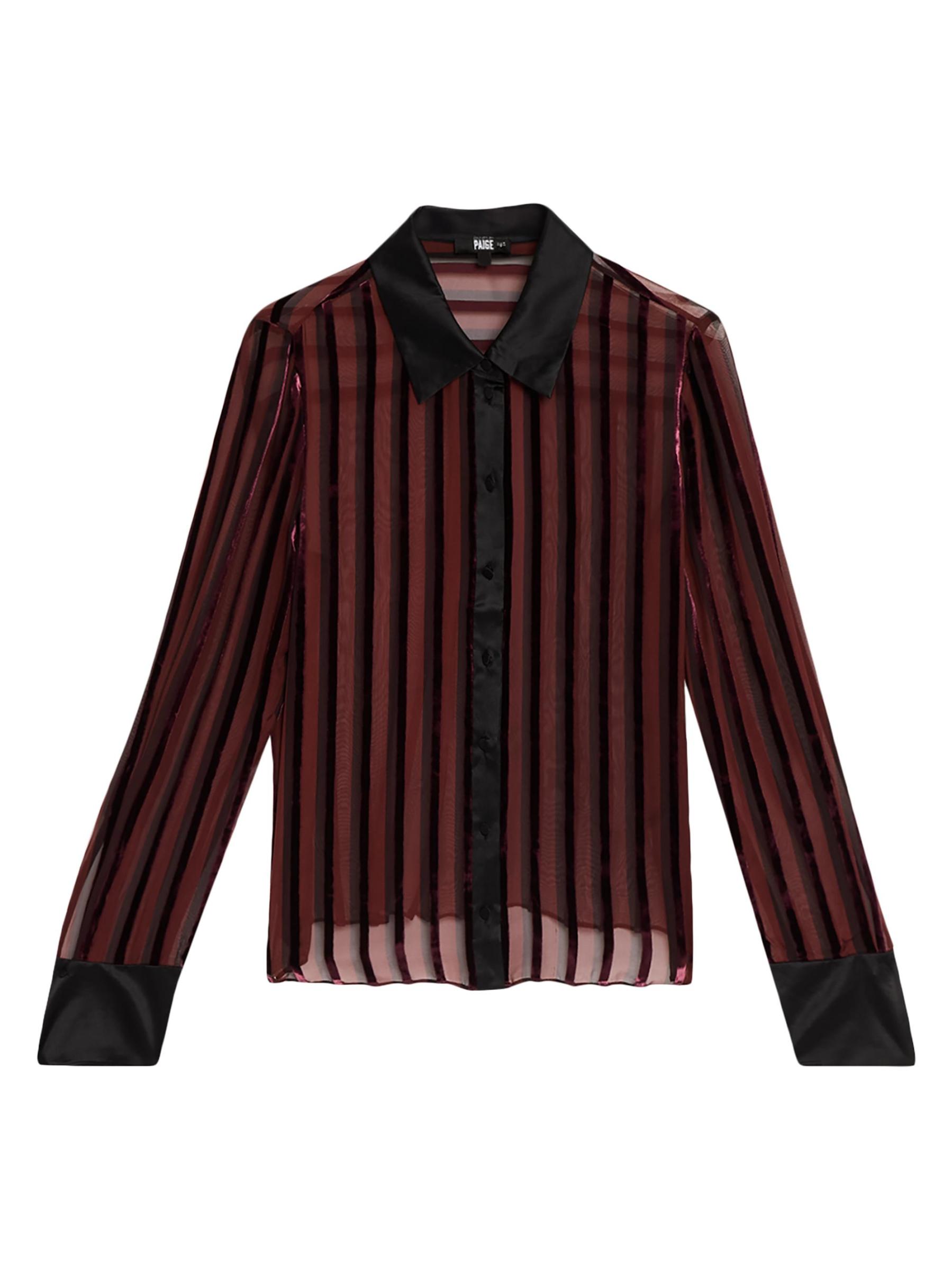 يتميز قميص Mazzy من Paige المصنوع من الحرير المرن بخطوط عمودية رائعة وصورة ظلية كلاسيكية بأزرار أمامية.