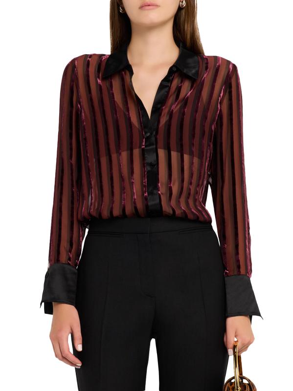 يتميز قميص Mazzy من Paige المصنوع من الحرير المرن بخطوط عمودية رائعة وصورة ظلية كلاسيكية بأزرار أمامية.طوق سبريد أساور بأزرار بأكمام طويلة إغلاق بأزرار أمامية حرير/فيسكوز تنظيف جاف مستوردة