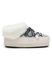 من حذاء القمر × كبسولة ضيف إن ريزيدنس. بطانة من الفرو الصناعي المخملي على بغال EVX Chalet. يتميز هذا التصميم المُصمم بجزء علوي مخطط بنقشة شيفرون بتفاصيل من الجلد المدبوغ بلون متناسق ونعل سميك ومبطن.إصبع مستدير سهل الارتداء الجزء العلوي مصنوع من الجلد المزرك/القماشي بطانة نسيجية نعل مطاطي نوع الفراء: صناعي مستوردة