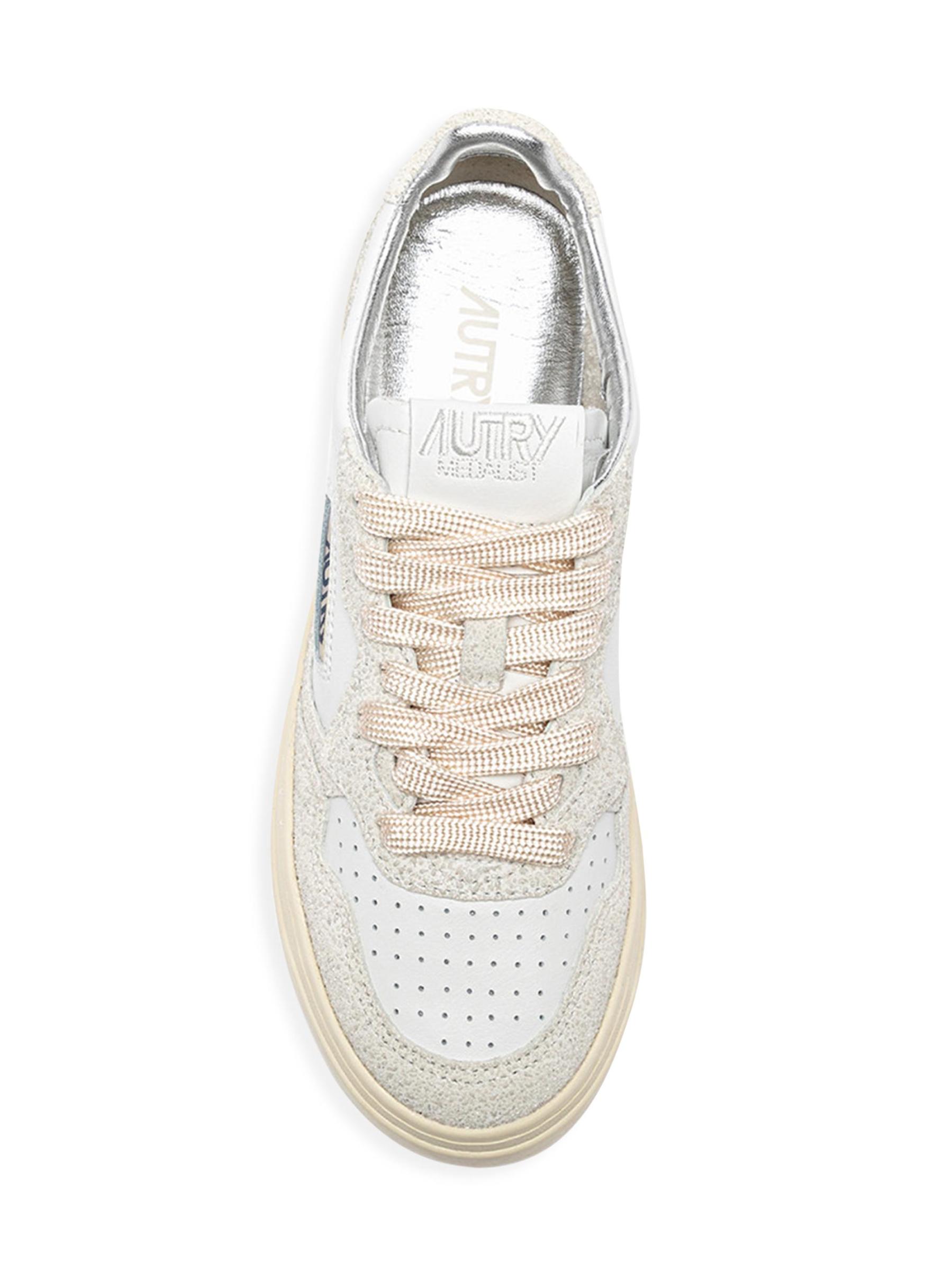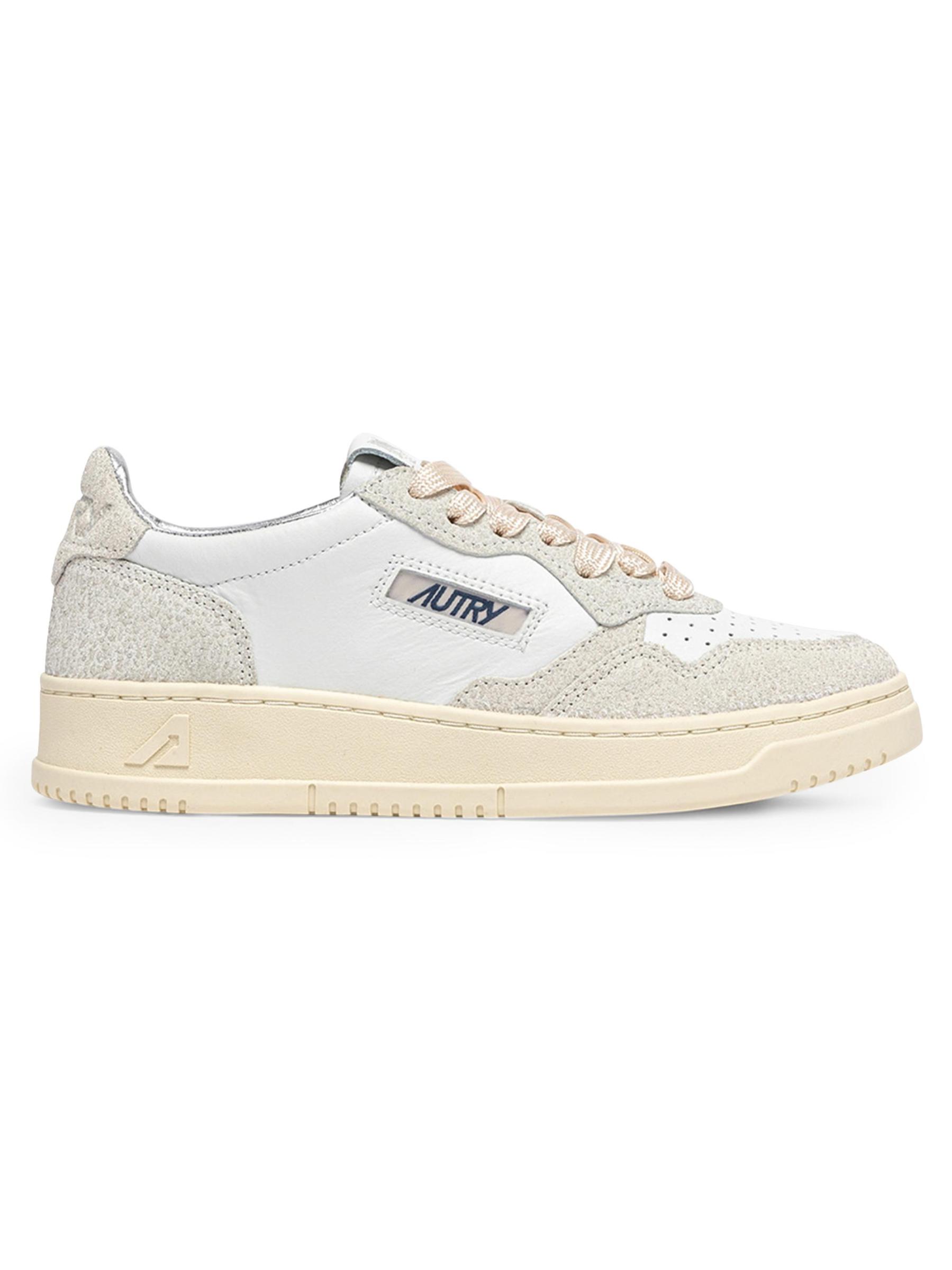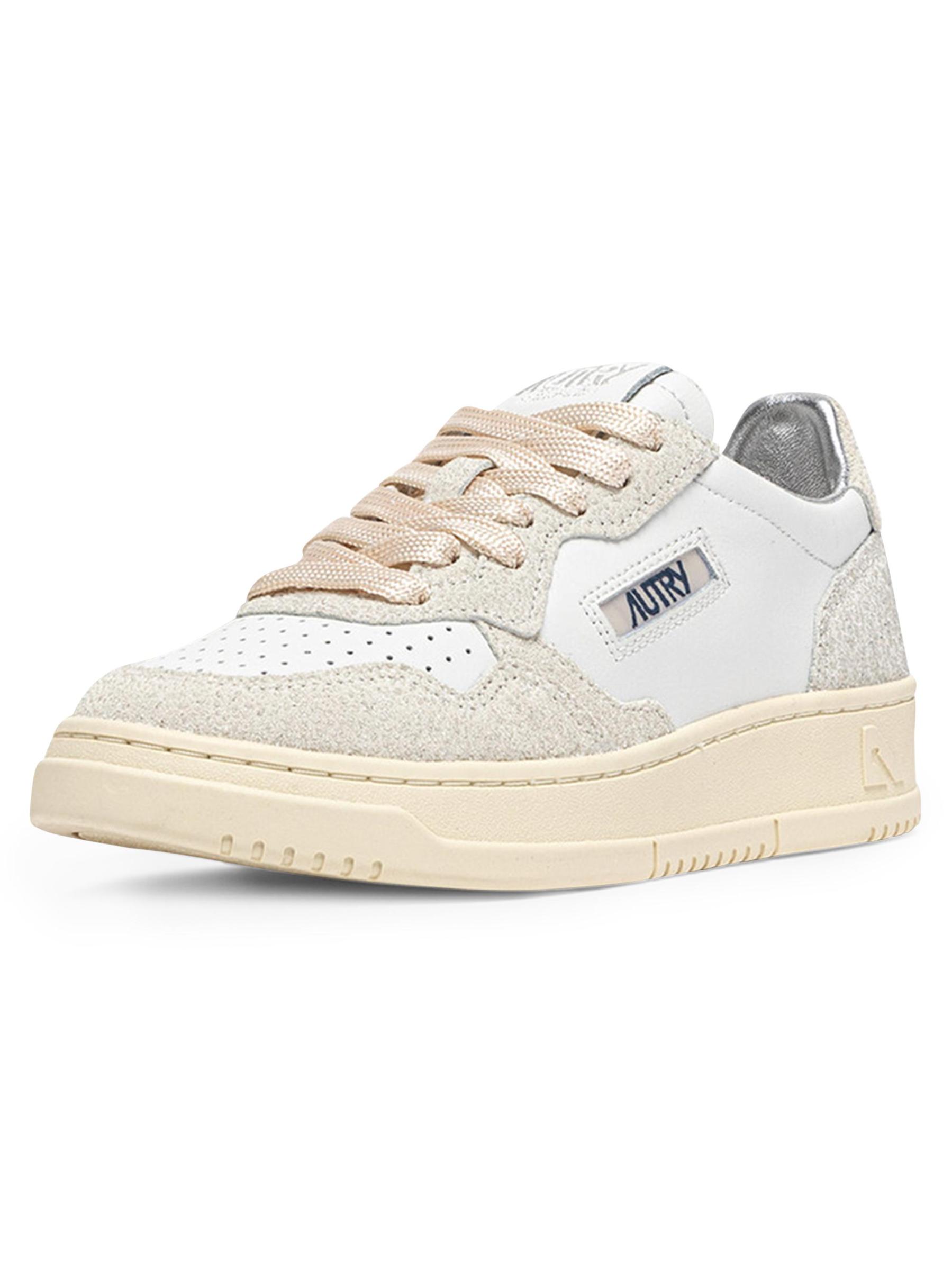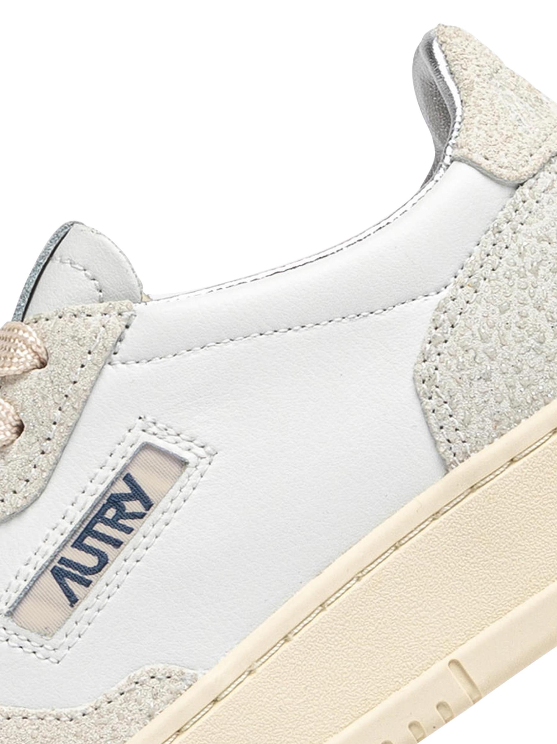 حذاء Autry Medalist ذو الرقبة المنخفضة مصنوع من الجلد والجلد المدبوغ بلون مغاير مع لسان نسيجي وعلامة ليبرتي عاكسة للضوء.