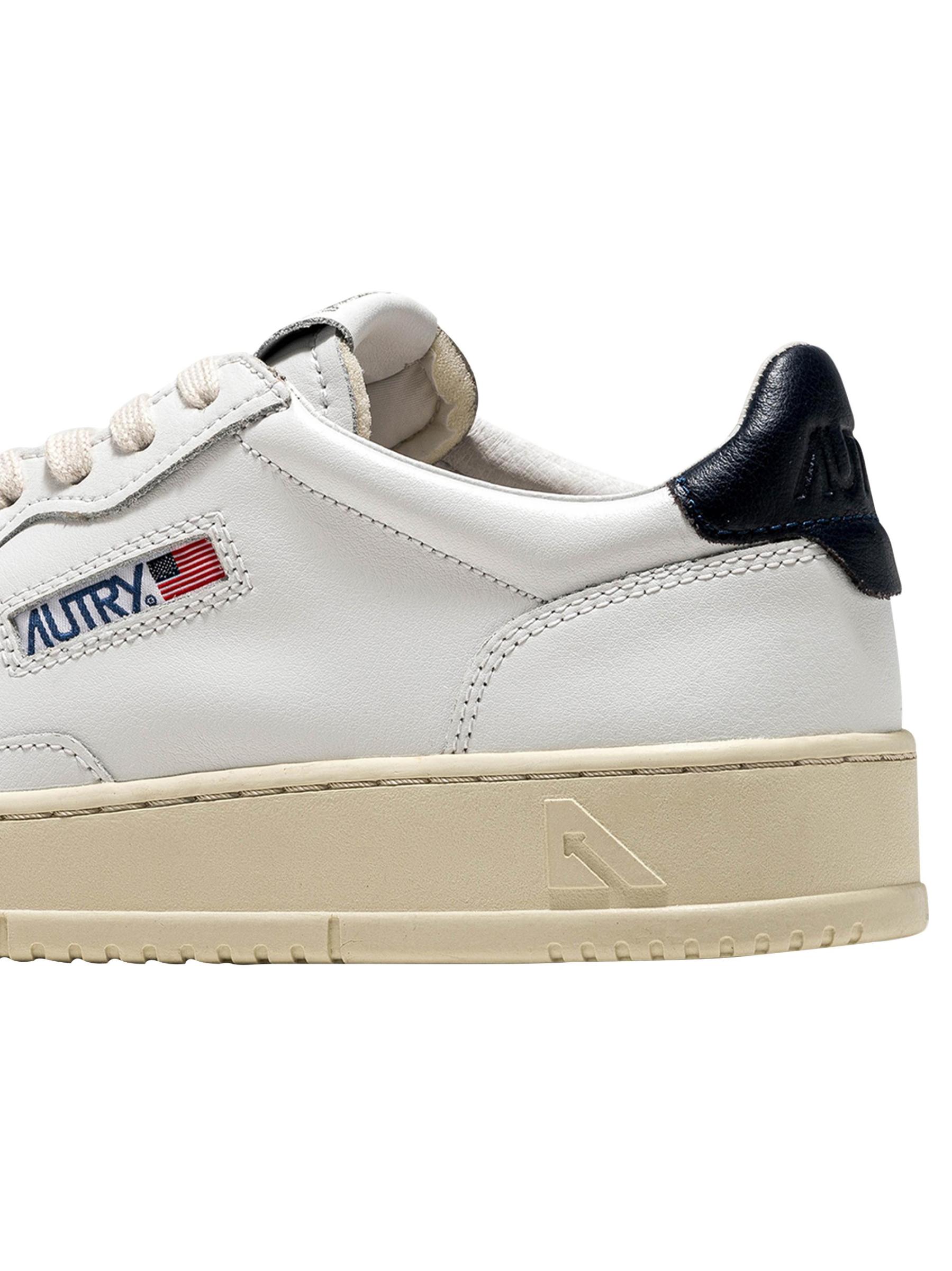 حذاء Autry Medalist ذو الرقبة المنخفضة مصنوع من الجلد بلونين مع لسان نسيجي وعلامة ليبرتي عاكسة للضوء.