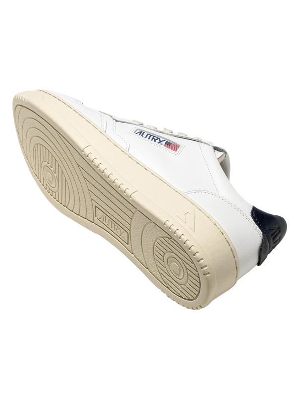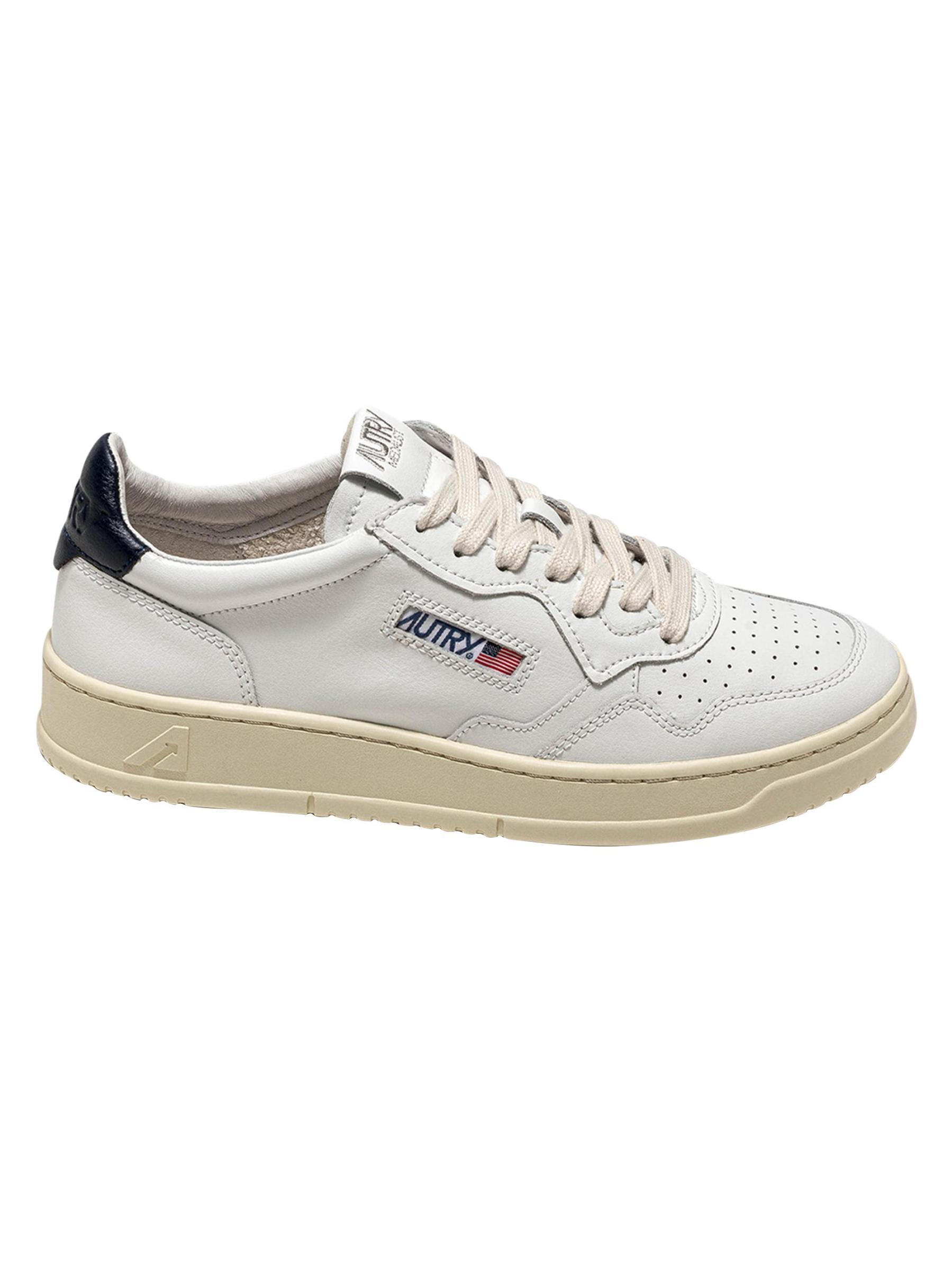 حذاء Autry Medalist ذو الرقبة المنخفضة مصنوع من الجلد بلونين مع لسان نسيجي وعلامة ليبرتي عاكسة للضوء.إصبع مستدير نمط بأربطة الجزء العلوي مصنوع من الجلد بطانة من الجلد والقطن نعل مطاطي مستوردة