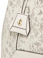 تتميز حقيبة Diamond المتوسطة الحجم من Jimmy Choo المصنوعة من الجلد المثقب بنمط الماس المميز وتشطيب الأجهزة باللون الذهبي الفاتح.