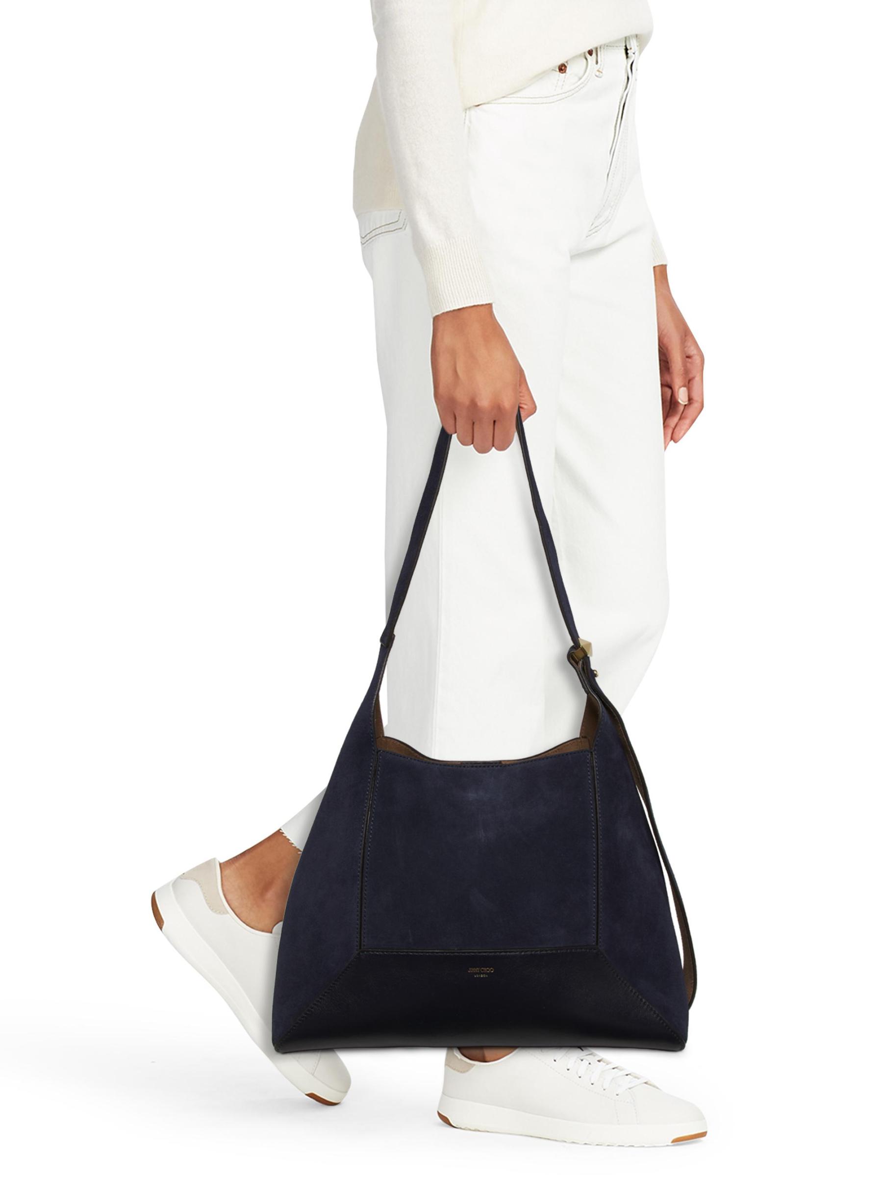حقيبة Diamond hobo المتوسطة هذه من Jimmy Choo مصنوعة من الجلد المدبوغ وتتميز بحزام قابل للتعديل للارتداء متعدد الاستخدامات.