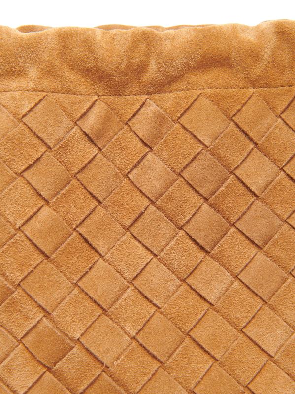 حقيبة Dustbag من Bottega Veneta مصنوعة من الجلد المدبوغ وتتميز بنسيج Intrecciato المميز للدار. تم تصميم هذه الحقيبة برباط للإغلاق وملحق بحلقة جلدية مع زر كبس للحمل على الكتف.حزام للكتف القفل برباط جلد سويدي البطانة: نايلون صُنع في إيطاليا