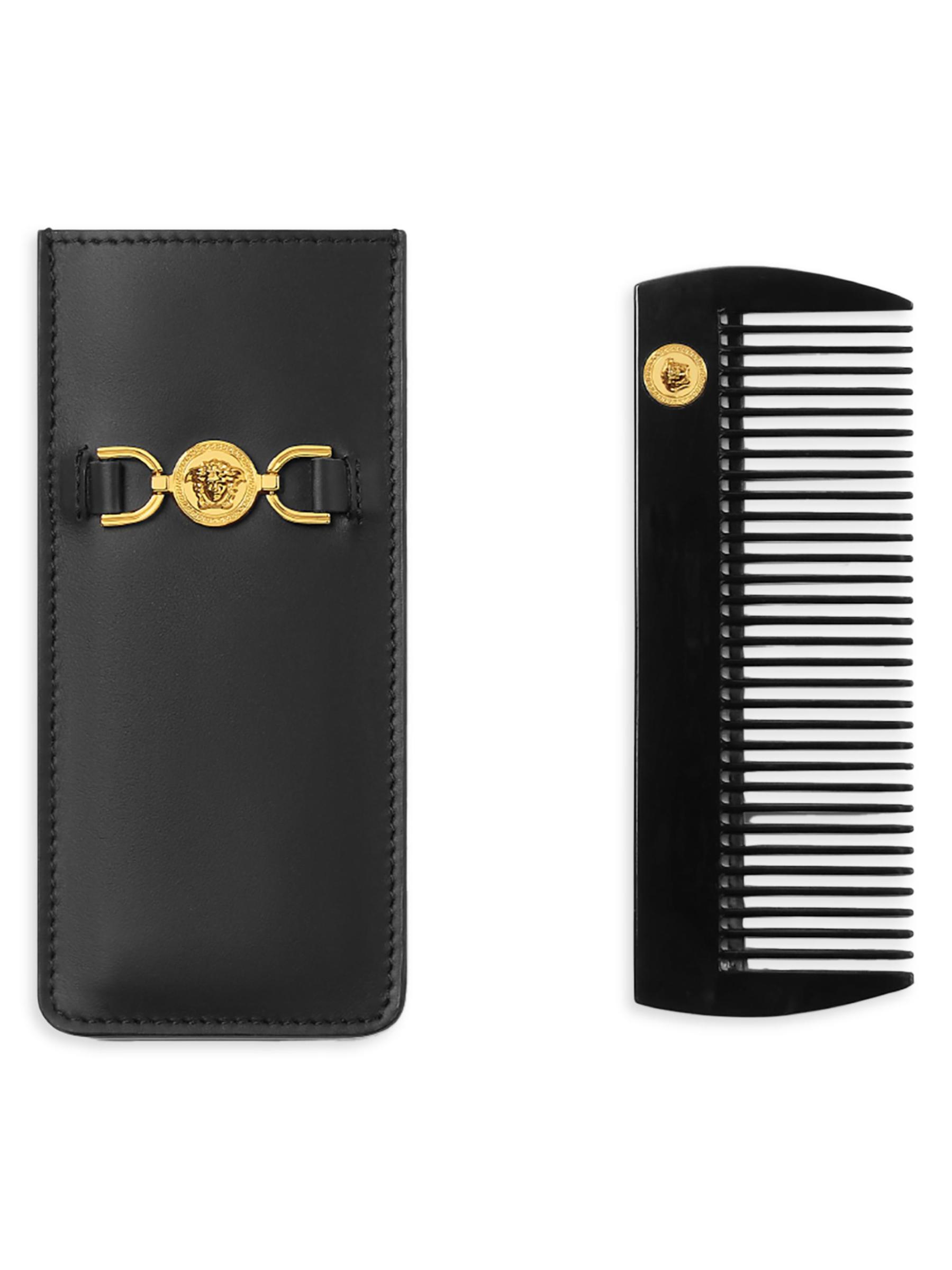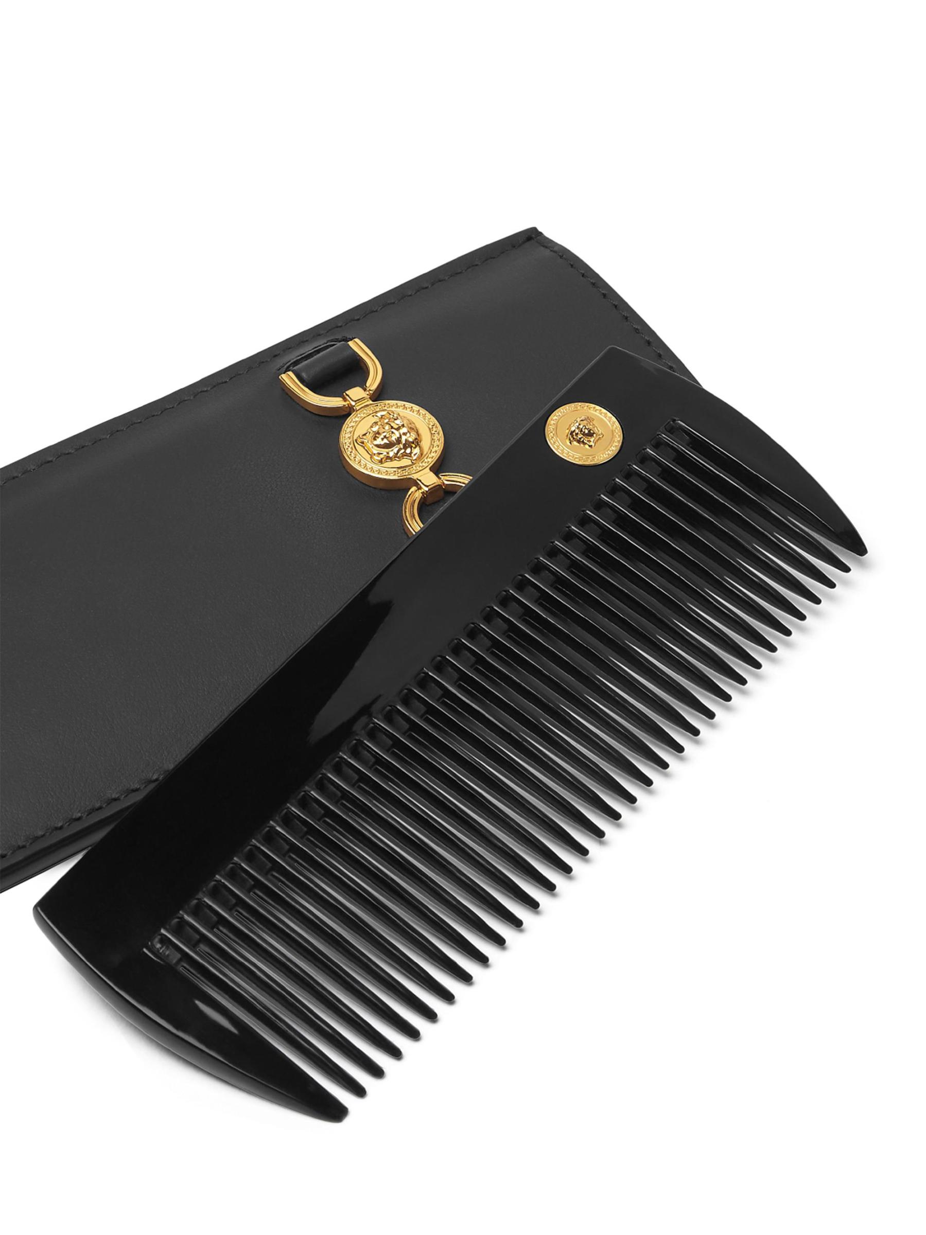 تم تصميم مشط فيرساتشي هذا بغمد رأس ميدوسا من الجلد الإيطالي. كما تم تزيين مشط فيرساتشي هذا بزخرفة الشعار المميز للعلامة التجارية.