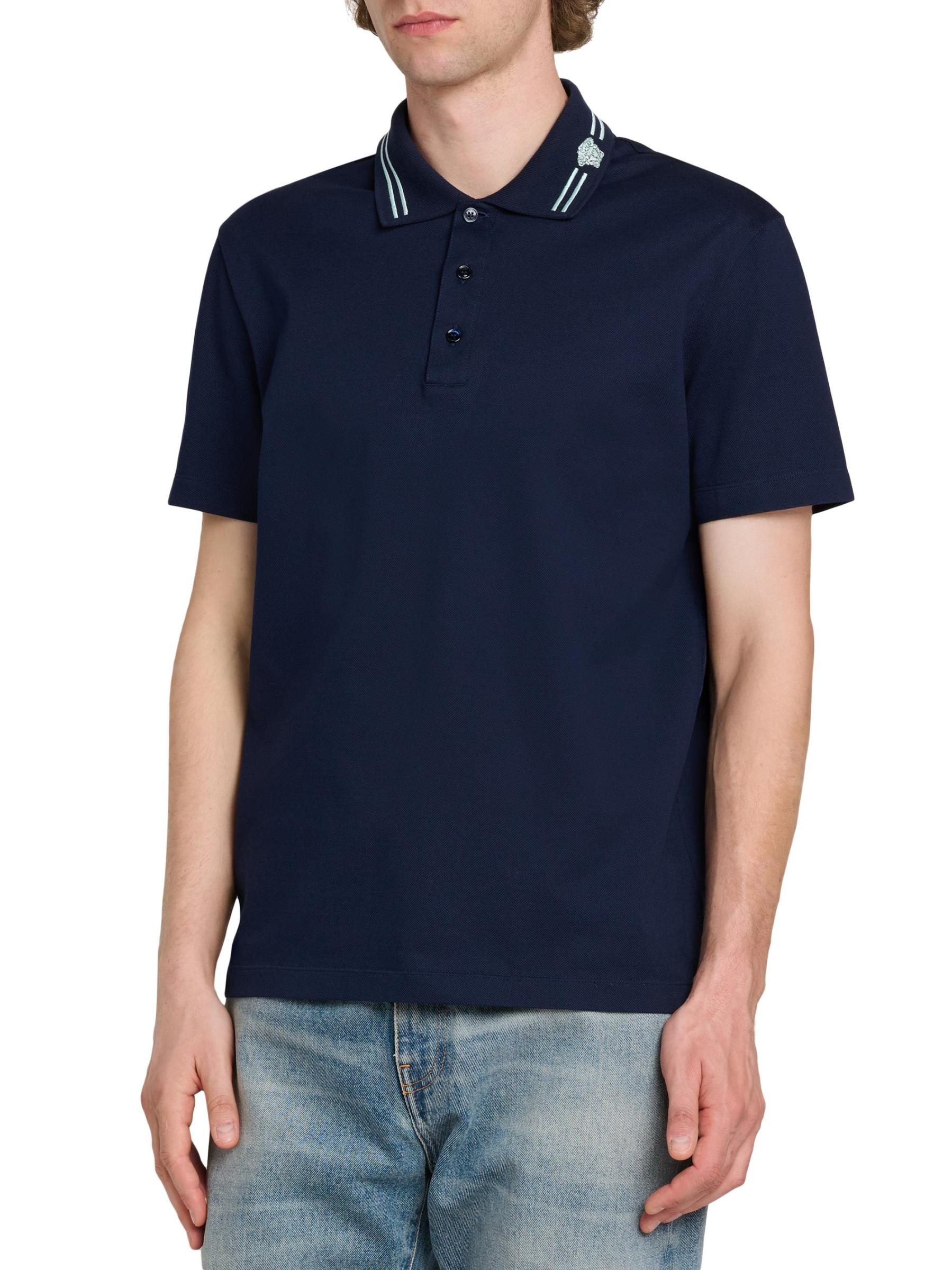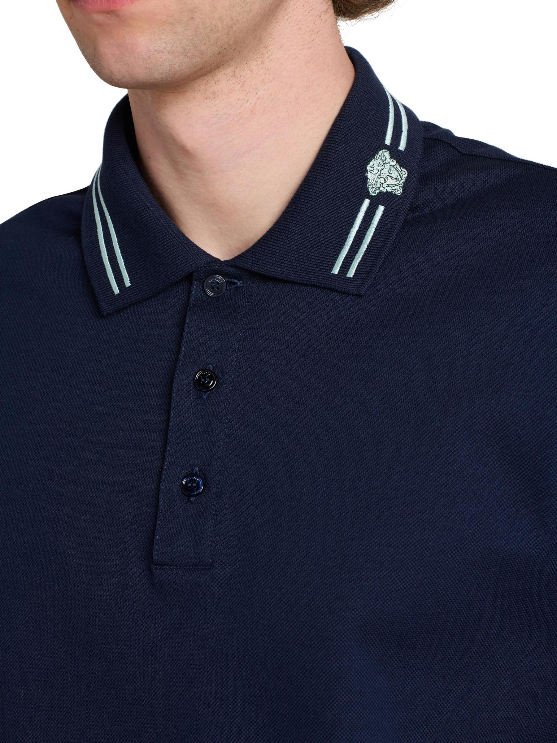 يتميز قميص البولو هذا المصنوع من قطن البيكيه بشعار ميدوسا من فيرساتشي المطرز على الياقة المنتشرة.