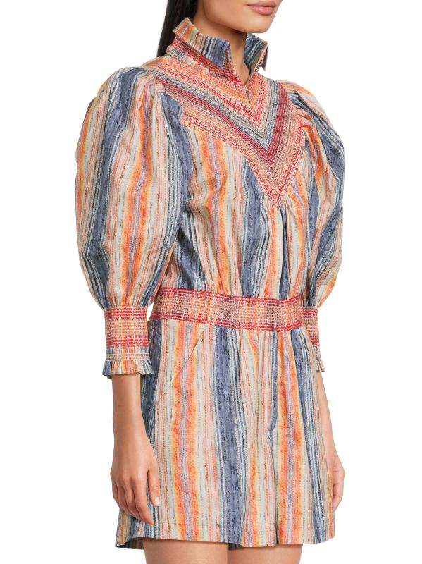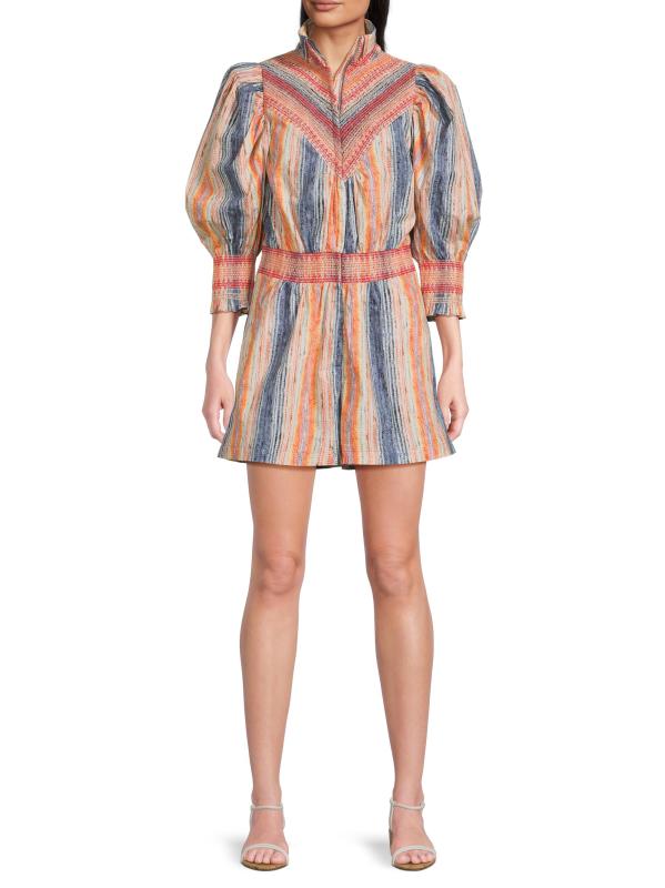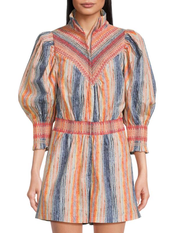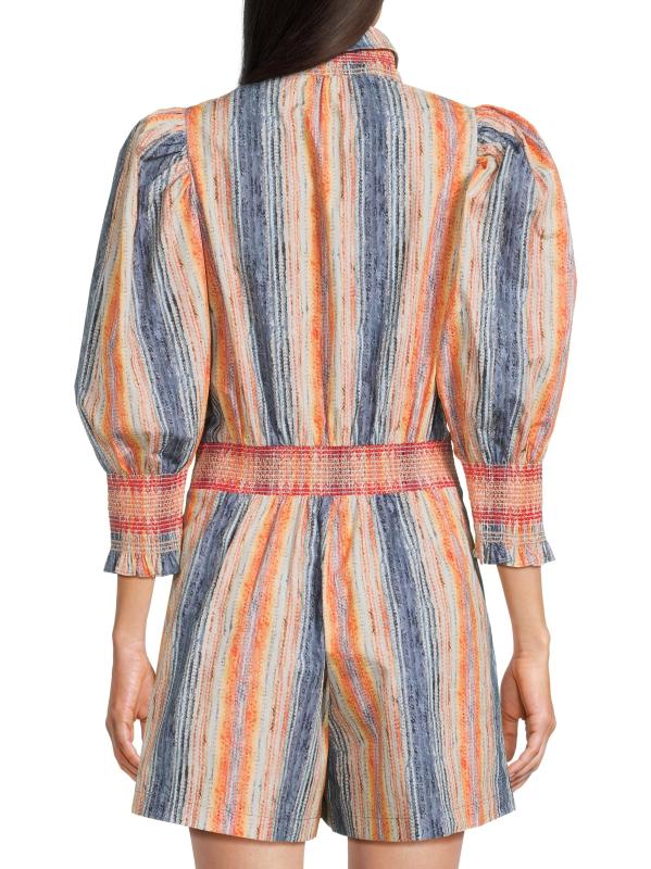 يتميز رومبير Hope for Flowers المزين بنمط مخطط مختلط بتصميم رياضي بسحّاب أمامي وياقة عريضة وأكمام منفوخة بطول الكوع.
