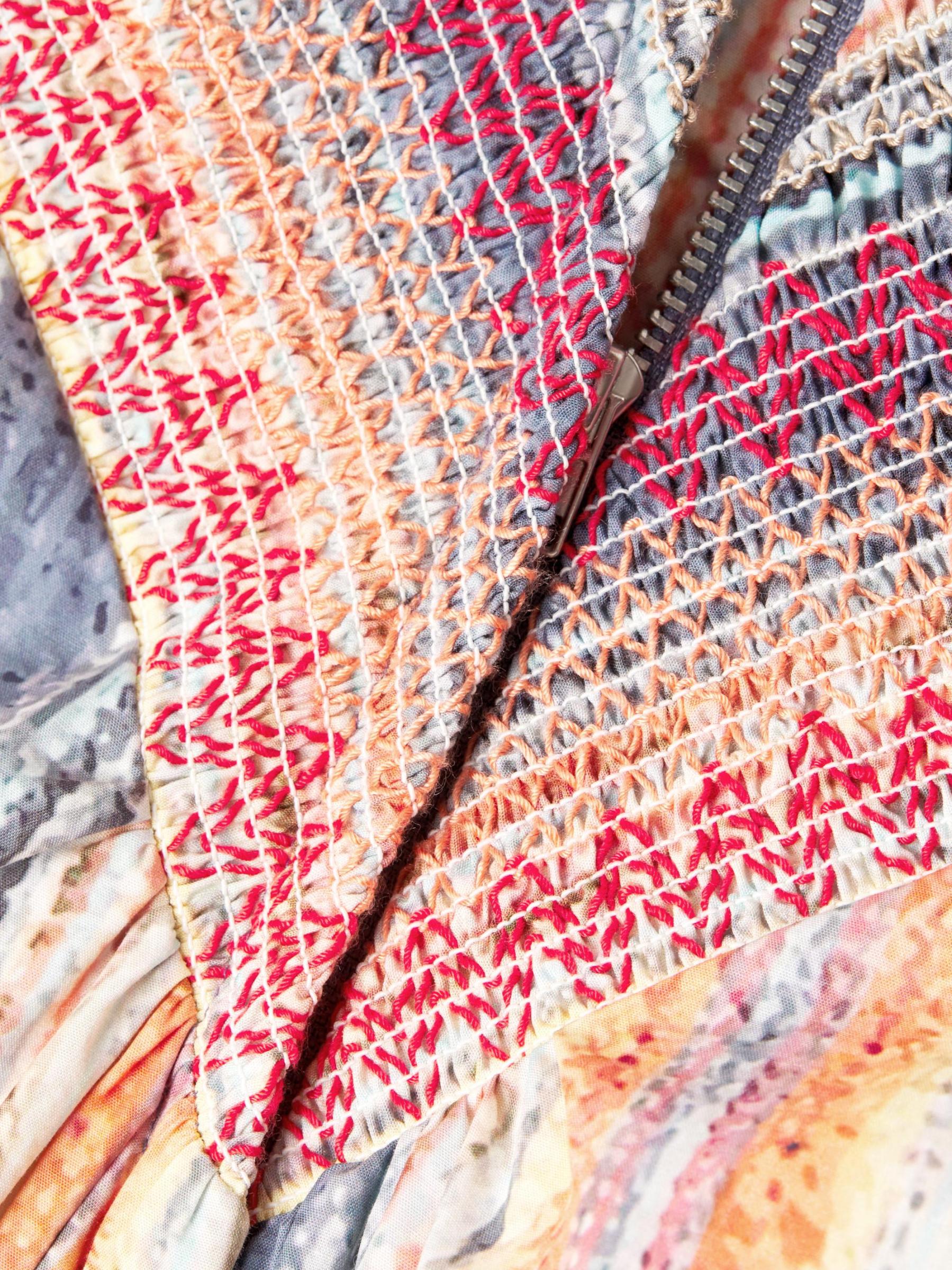 يتميز رومبير Hope for Flowers المزين بنمط مخطط مختلط بتصميم رياضي بسحّاب أمامي وياقة عريضة وأكمام منفوخة بطول الكوع.مصنوع من القطن العضوي ياقة ستاند أكمام منفوخة بطول الكوع وأساور مطرزة خصر مطرز جيوب جانبية على درزات إغلاق بسحّاب أمامي قطن عضوي بنسبة 100%، باستثناء الزخرفة تنظيف جاف مستوردة