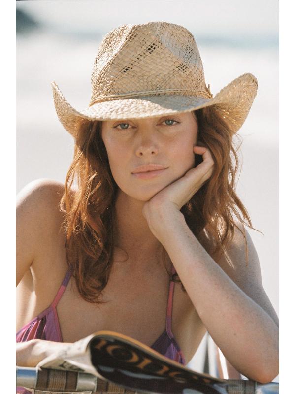من مجموعة المذكرات. قبعة صندانس كاوبوي من لاك أوف كولور مصنوعة من الرافيا، وهي مزينة بحافة عريضة.