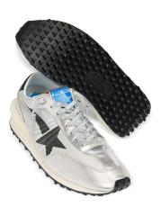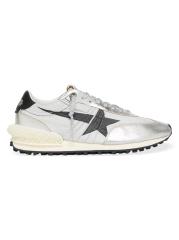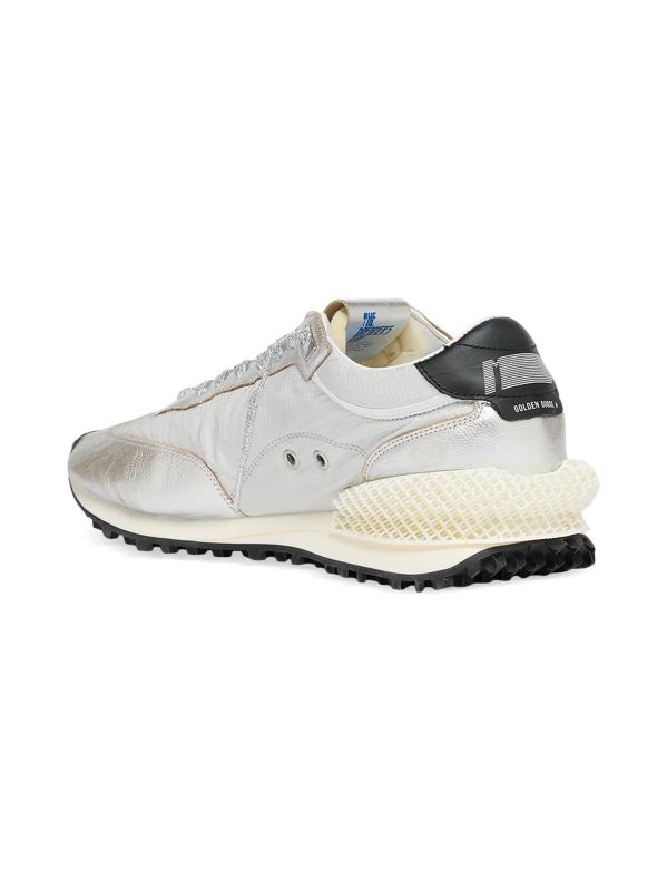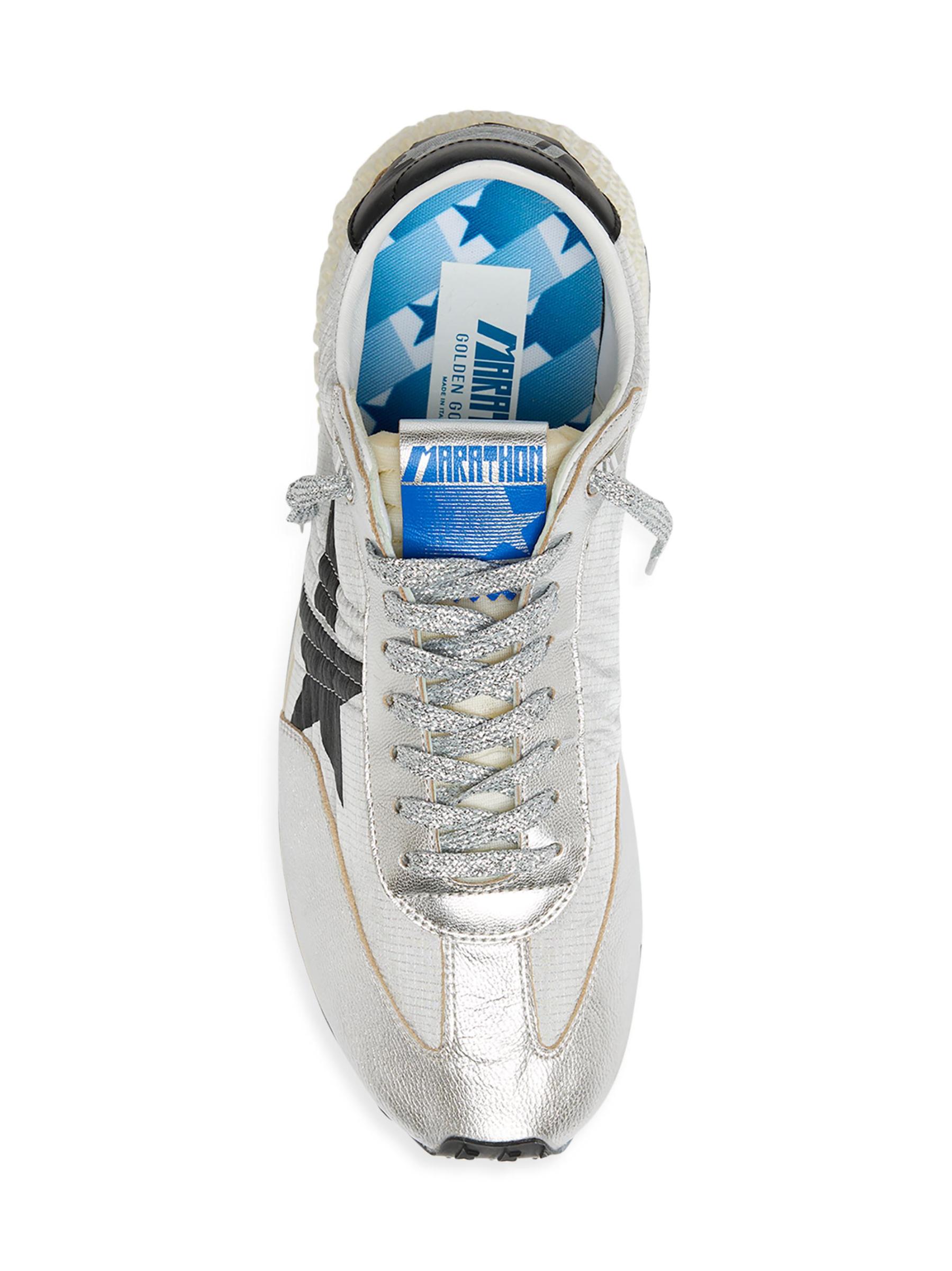 يتميز حذاء Marathon الرياضي ذو الرقبة المنخفضة من Golden Goose، المصنوع من النايلون والجلد المصفح المعدني، بمظهر مستوحى من الطراز القديم.