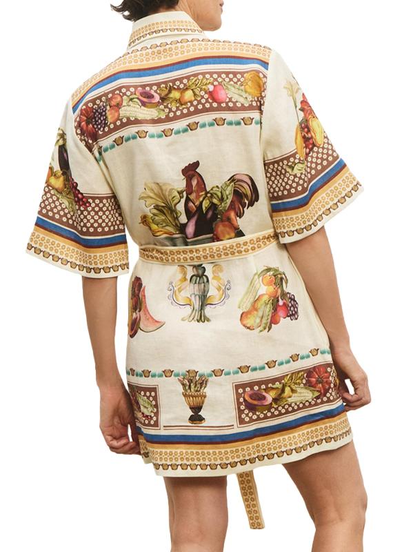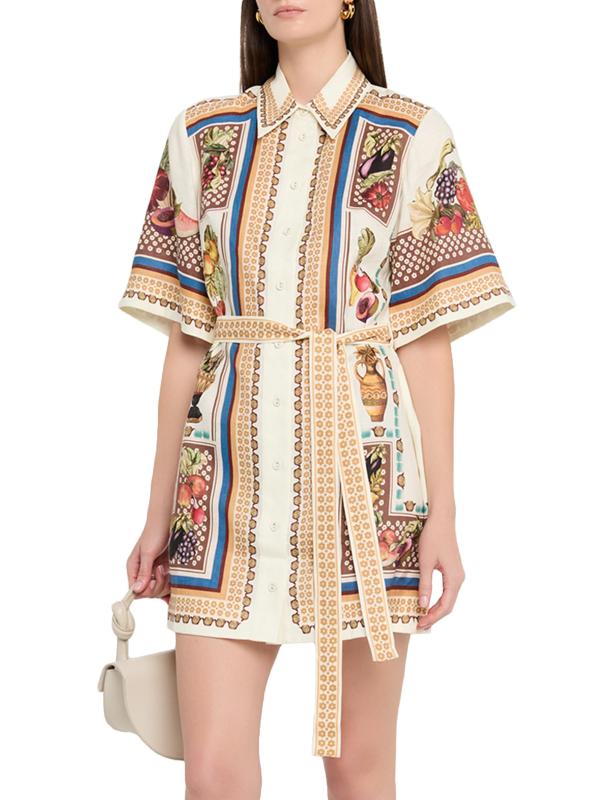 صُمم فستان Mercado الصغير من Alémais بطبعة نابضة بالحياة من الفواكه والخضروات، ويتميز بتنورة على شكل حرف A مع ربطة عنق لتشكيل الخصر.ياقة مدببة أكمام قصيرة خصر مربوط ذاتيًا جيوب جانبية إغلاق بأزرار أمامية مخفية كتان 100% تنظيف جاف مستوردة