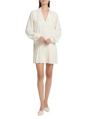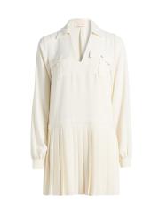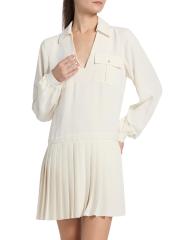 يمزج فستان Ramy Brook Mercedes الصغير بين تفاصيل القميص الكلاسيكي والصورة الظلية المريحة. يتميز التصميم بخصر منخفض مُحاط وطيات صندوقية عند التنورة، تكملها ياقة واسعة الانتشار وأكمام طويلة وجيوب مصممة خصيصًا بغطاء على الصدر.