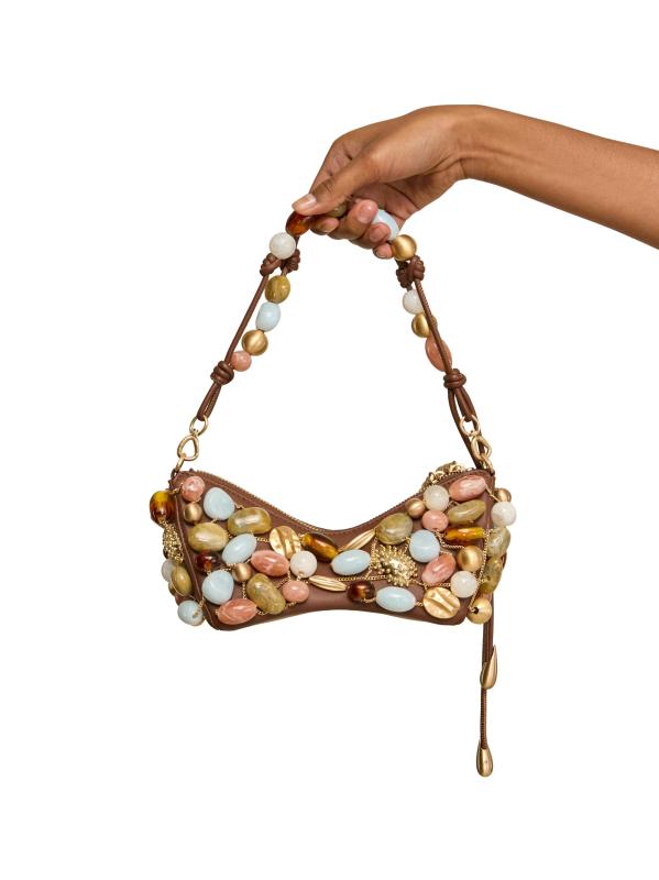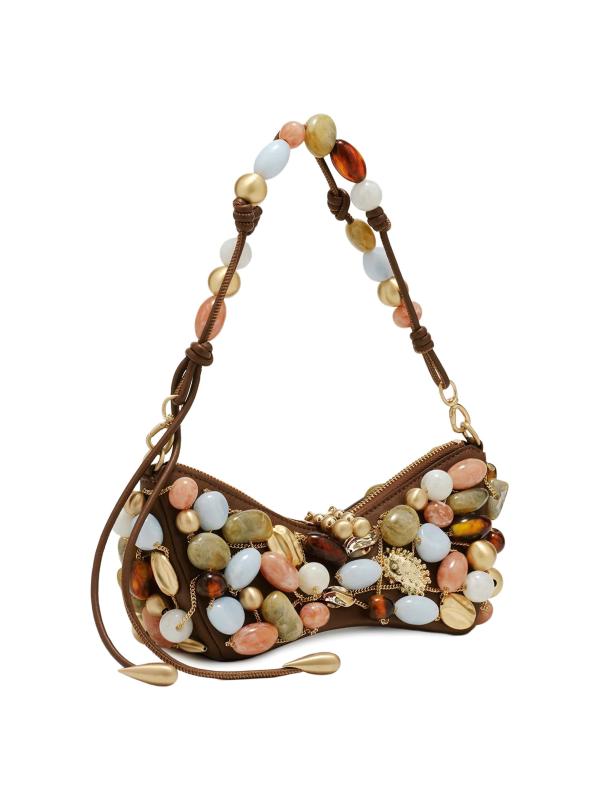 حقيبة الكتف Mercier من Cult Gaia مصنوعة من الجلد المرن ومزينة بأحجار متعددة الألوان.