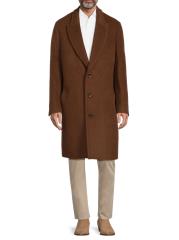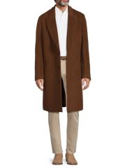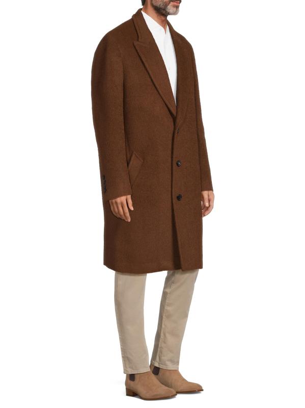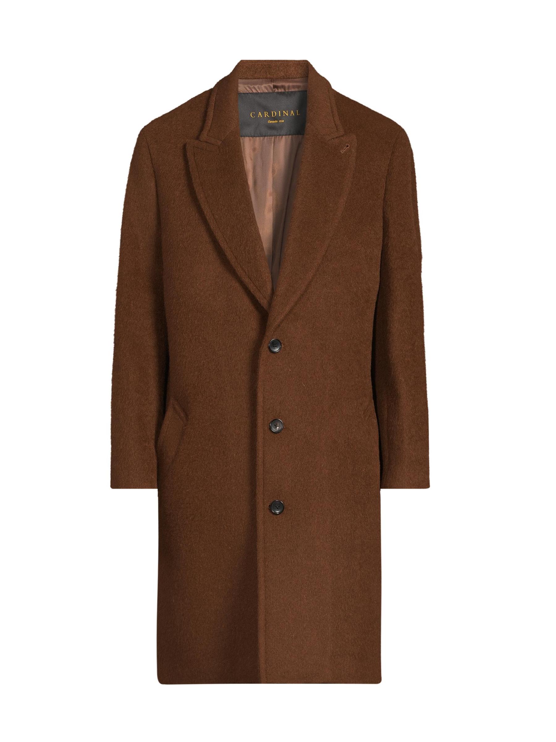 معطف ميركوري متوسط الطول من Cardinal Of Canada مصنوع من مزيج من الصوف المصقول والألبكة والموهير. تُكمل الجيوب الجانبية والطية العلوية قطعة الملابس الخارجية أحادية الصدر.