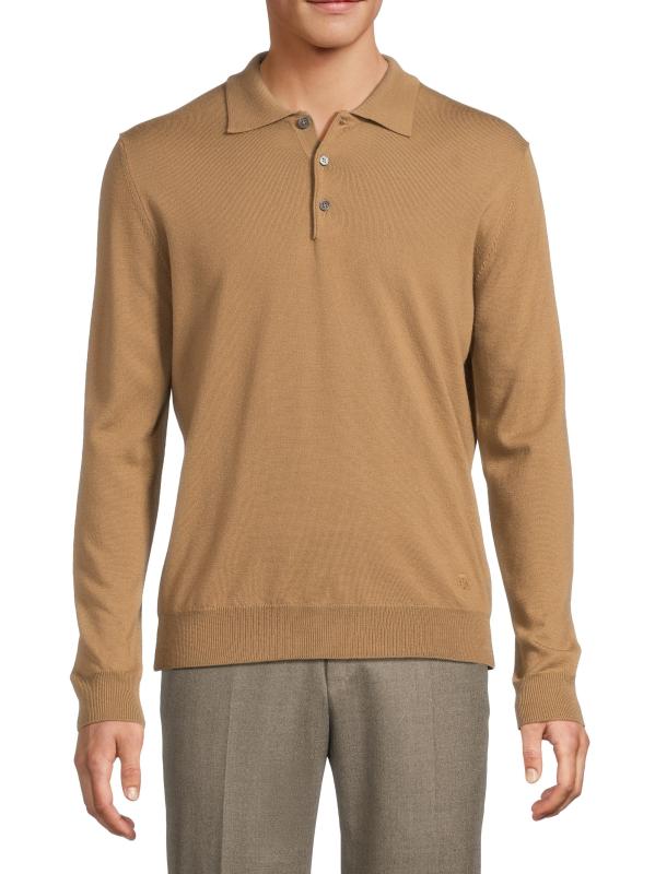 قميص بولو من صوف الميرينو من Corneliani محبوك بتصميم كلاسيكي ضيق.ياقة بولو أكمام طويلة تقليم مضلع فتحة بثلاثة أزرار صوف بنسبة 100% تنظيف جاف صُنع في إيطاليا