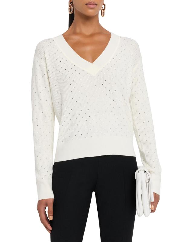 صُممت هذه السترة برقبة على شكل حرف V من Milly بأحجار الراين المتلألئة، وهي محبوكة من صوف ميرينو إلى صورة ظلية مريحة.