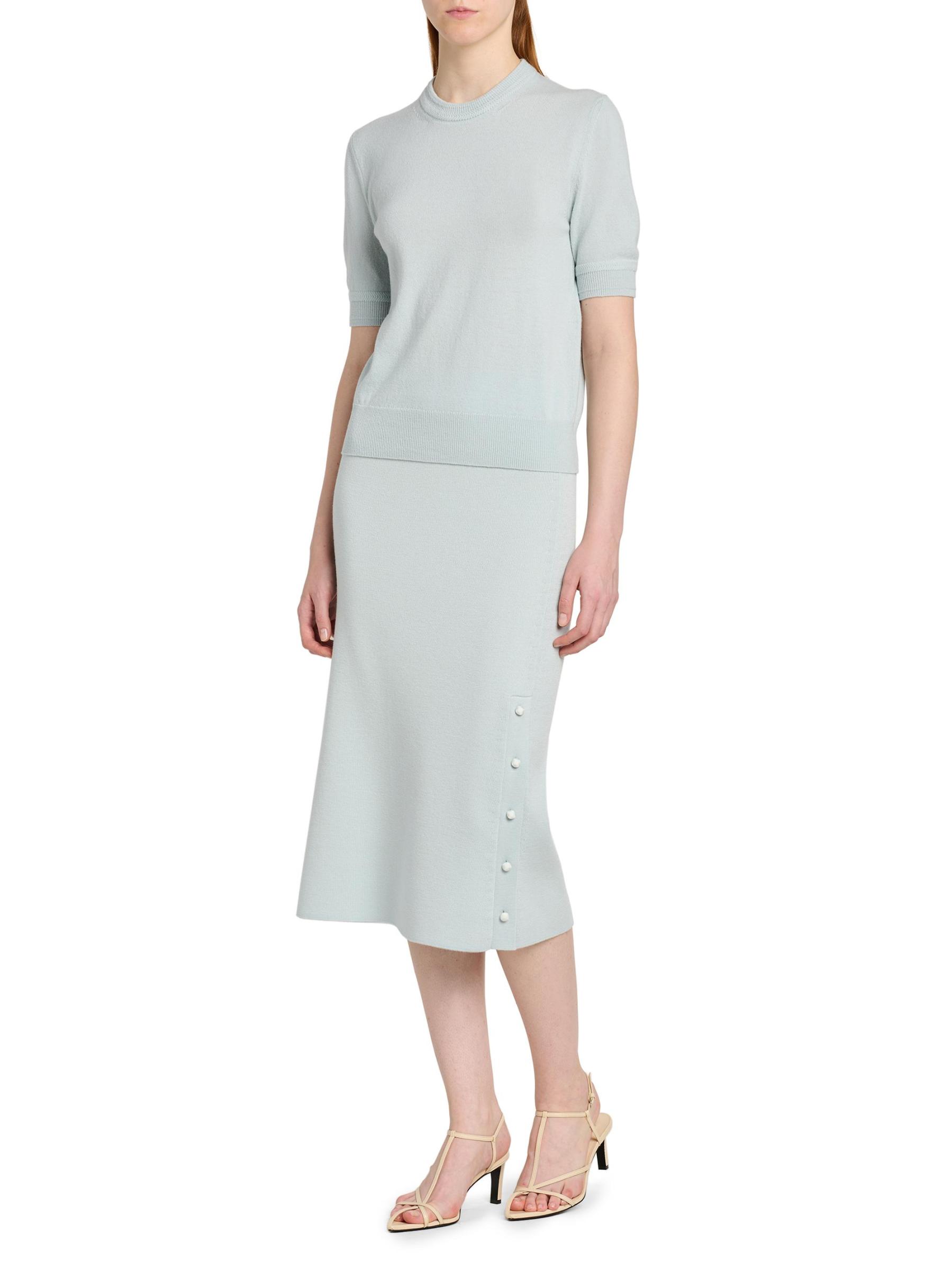 سترة جيل ساندر هذه، المصنوعة من صوف ميرينو، مصممة برقبة مستديرة وأكمام قصيرة وتقليم مضلع.