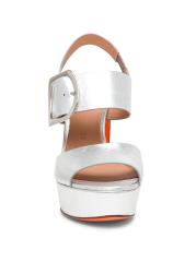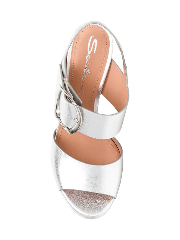 صُنع هذا الصندل من سانتوني في إيطاليا من الجلد المعدني فوق كعب سميك طويل.إصبع مفتوح إغلاق بمشبك الجزء العلوي مصنوع من الجلد بطانة جلدية نعل جلدي صُنع في إيطاليا