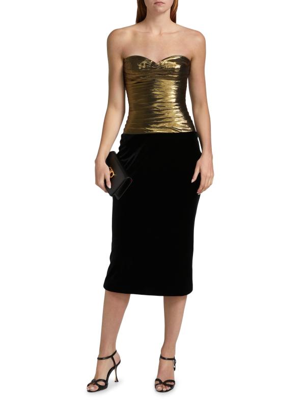 يتميز فستان سيرجيو هدسون المتوسط بصدّار معدني مطوي مع تقويرة رومنسية بدون حمالات ودعم بالأسلاك السفلية.