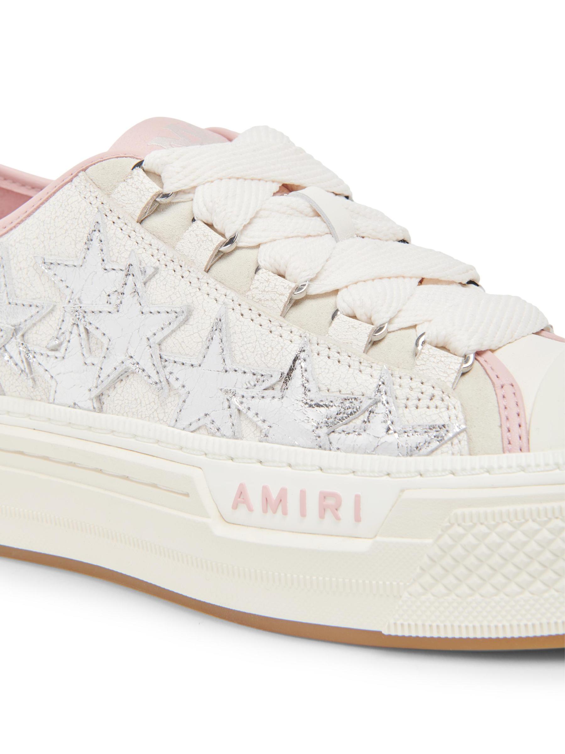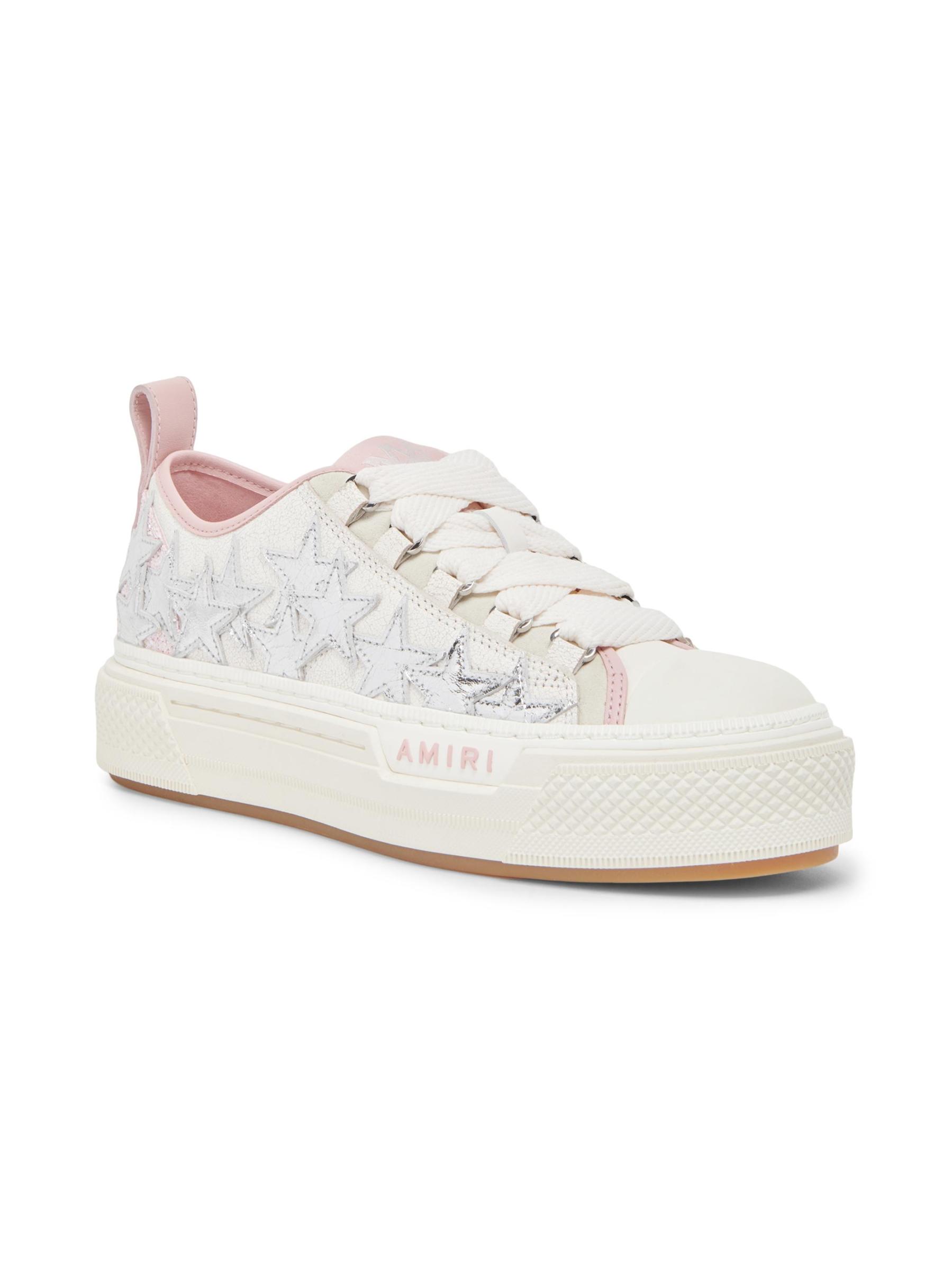هذا الحذاء الرياضي Stars Court ذو الرقبة المنخفضة من Amiri مصنوع من الجلد ويتميز بتفاصيل معدنية وكعب سميك.